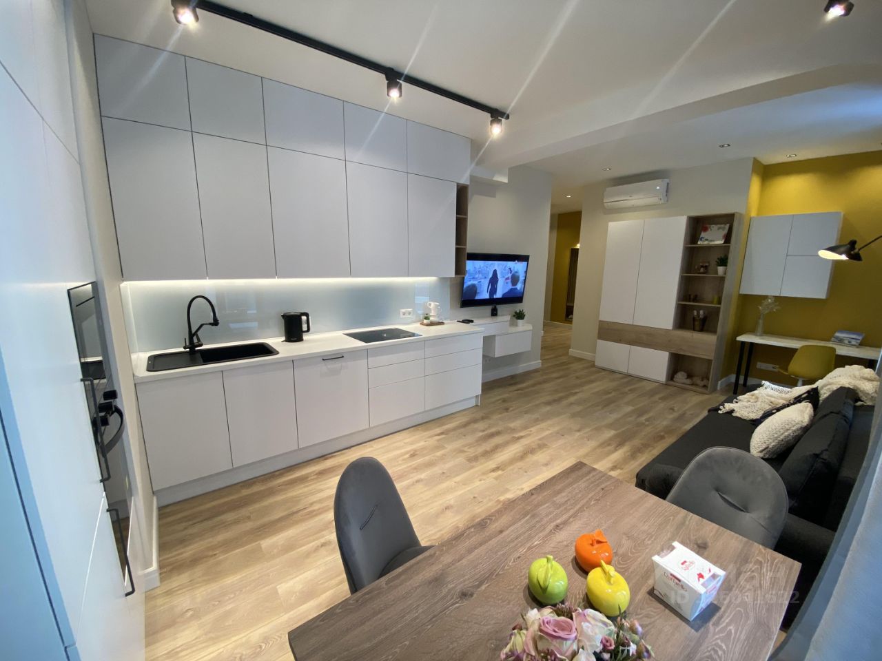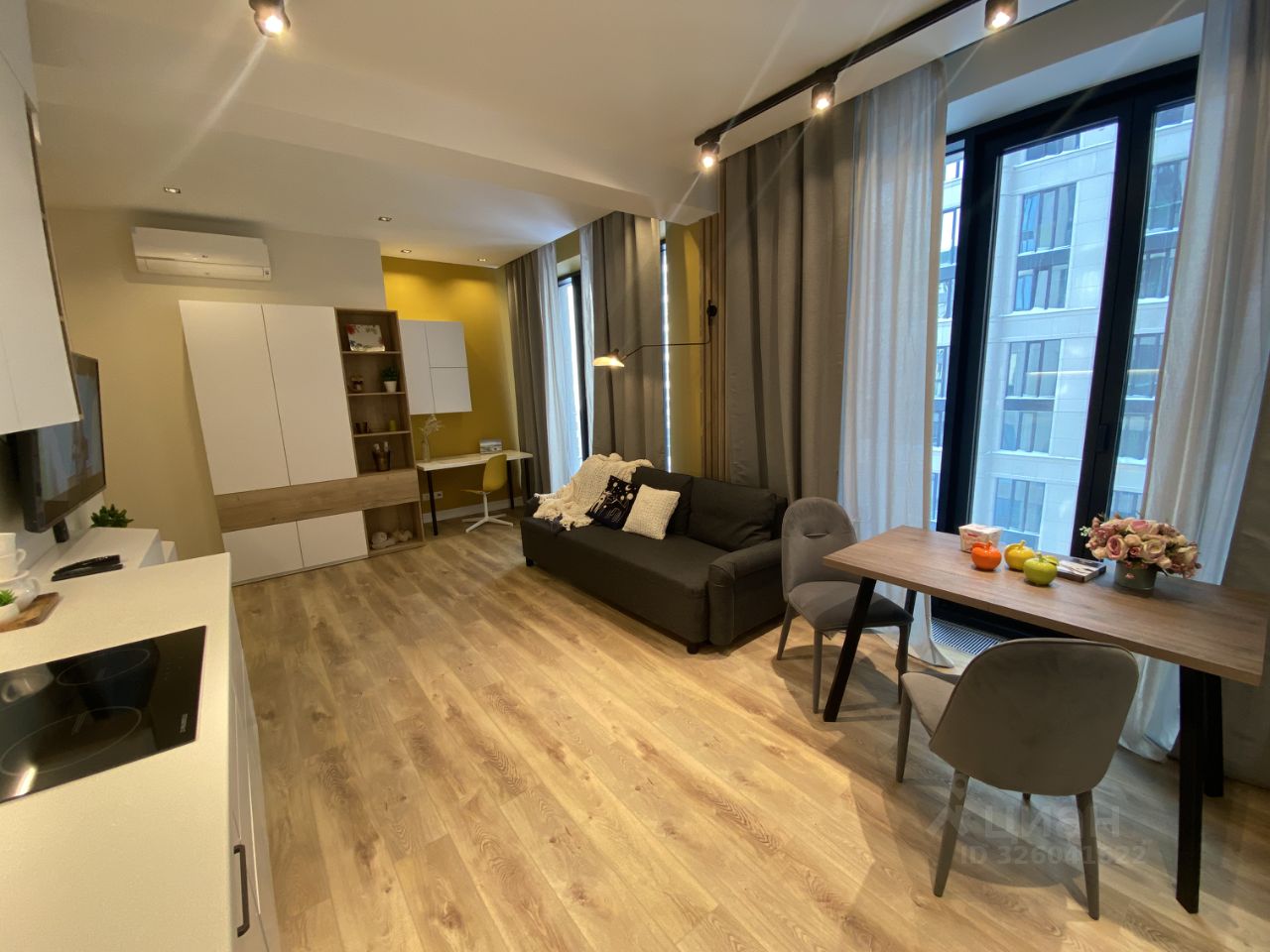 Квартира полностью укомплектована мебелью и бытовой техникой, но если что -то не нужно, то есть возможность вывезти. В подъезде красивые входные группы и холлы, охрана на входе. На территории ЖК есть рестораны, кофейни, шикарный фитнес-клуб с бассейном, супермаркет. Подземный паркинг можно снять за отдельную плату.