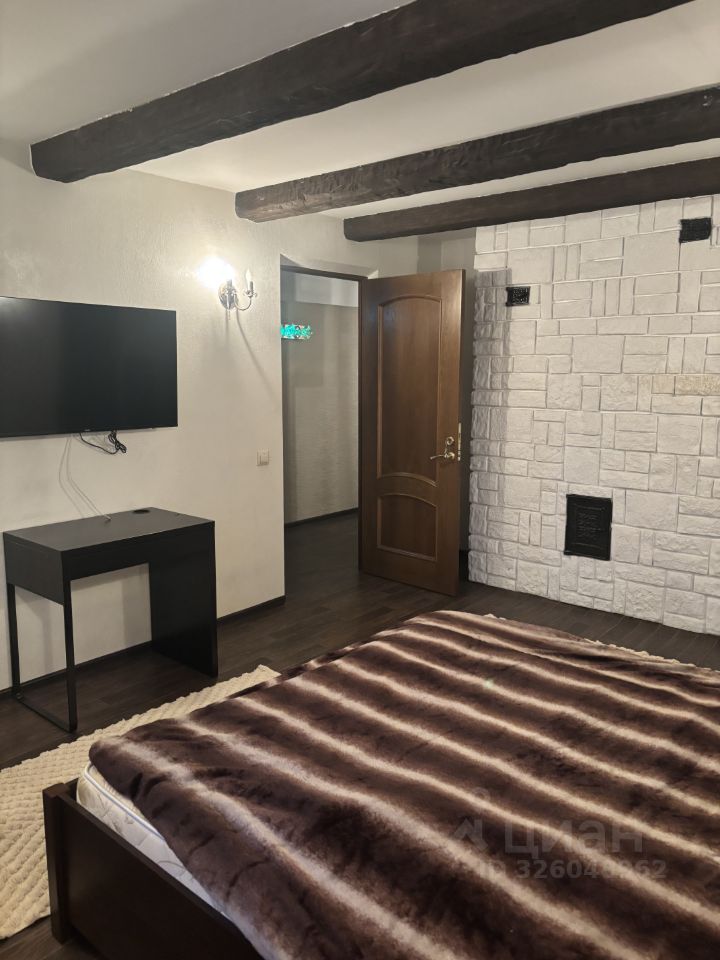 1 этаж: прихожая, туалетная комната, чуть ниже пред банная комната, душевая, сауна, баня и дровяная печь 2 этаж (основной): кухня, ванная комната с туалетом, огромная гостиная с камином и мягкими диванами 3 этаж: 3 спальни и коридор — Почти каждое помещение оснащено телевизором, кондиционером и встроенным в стену шкафом купе — На всей территории ловит интернет, связь и телевидение. — Всё в рабочем состоянии, сделан небольшой ремонт на 2 этаже, была куплена мебель на кухню и зал + телевизоры в каждую комнату.
