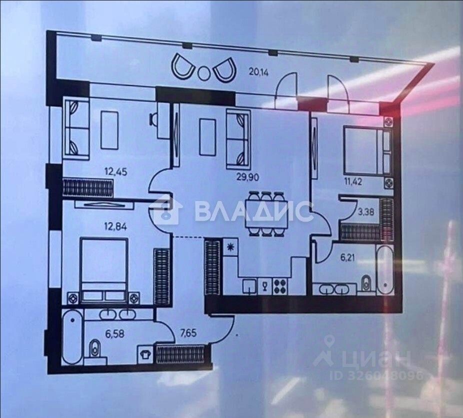 Планировка: Планировка квартиры продумана до мелочей. Комнаты изолированы, что обеспечивает комфорт и уединение. Общая площадь квартиры — 108 кв. м, жилая — 60,11 кв. м. Два совмещённых санузла, одна лоджия (площадью более 20кв. м). Квартира угловая, окна выходят на улицу.