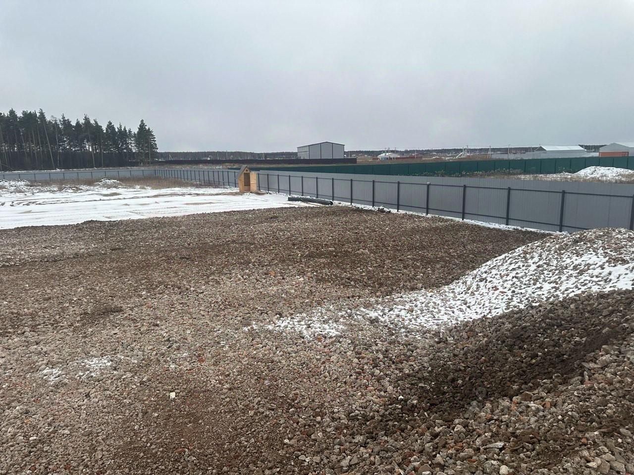 Участок ровный, отсыпан песком и бетонным боем. Проведено электричество 40кВт.