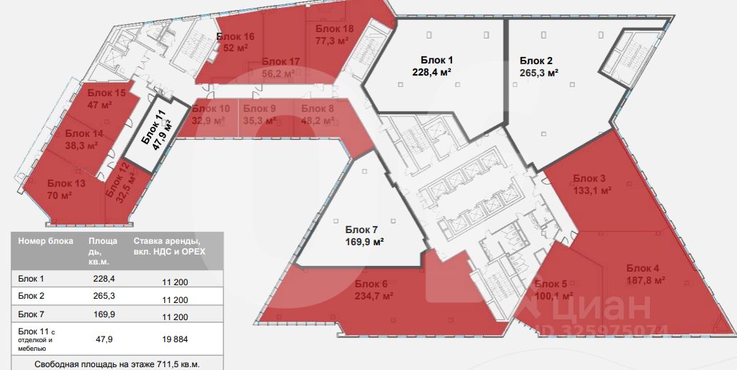 Площадь: 4 114 м2. Планировка: открытая. Состояние: под отделку. Ставка (включая эксплуатацию): 11 200 руб. за м2/год. Арендная плата: 3 839 733 руб./мес. Налог: включая НДС. Коммунальные расходы: оплачиваются по факту. Этаж: 4, 9, 10, 11 из 27. Тип аренды: Прямая аренда. Охрана: круглосуточная охрана здания.