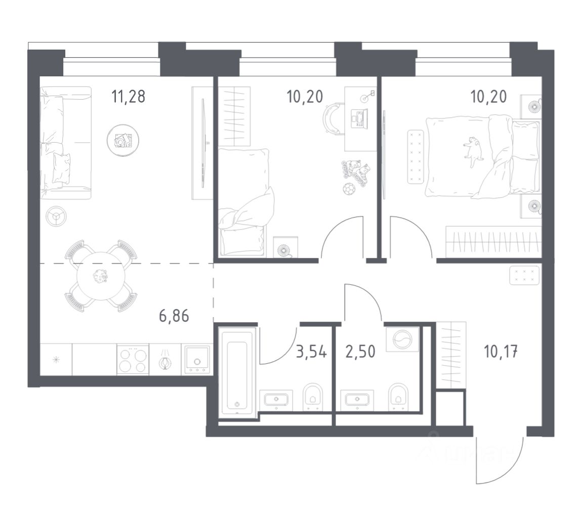 Строим кварталы для жизни с заботой о будущем. Предлагаются 2-комнатные апартаменты бизнес-класса площадью 54,75 кв.м в корпусе 1 на 10-м этаже, в жилом комплексе ''Верейская 41''.