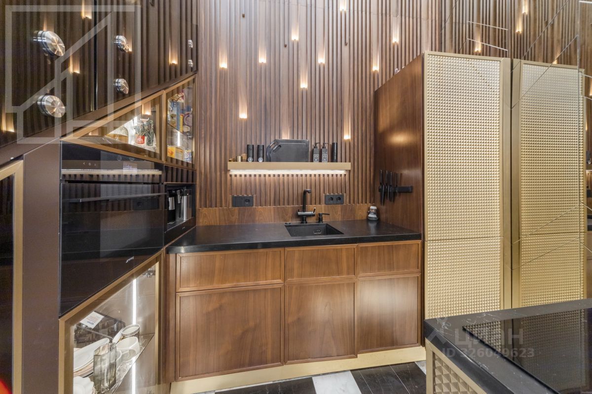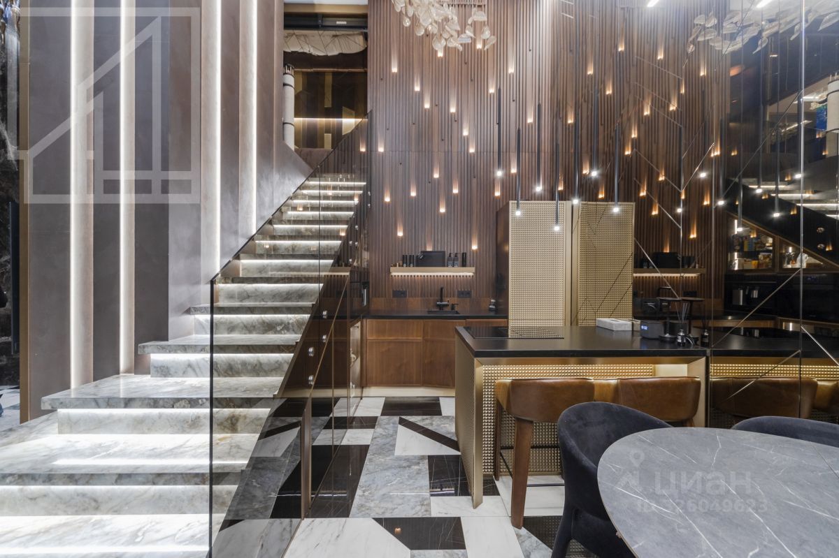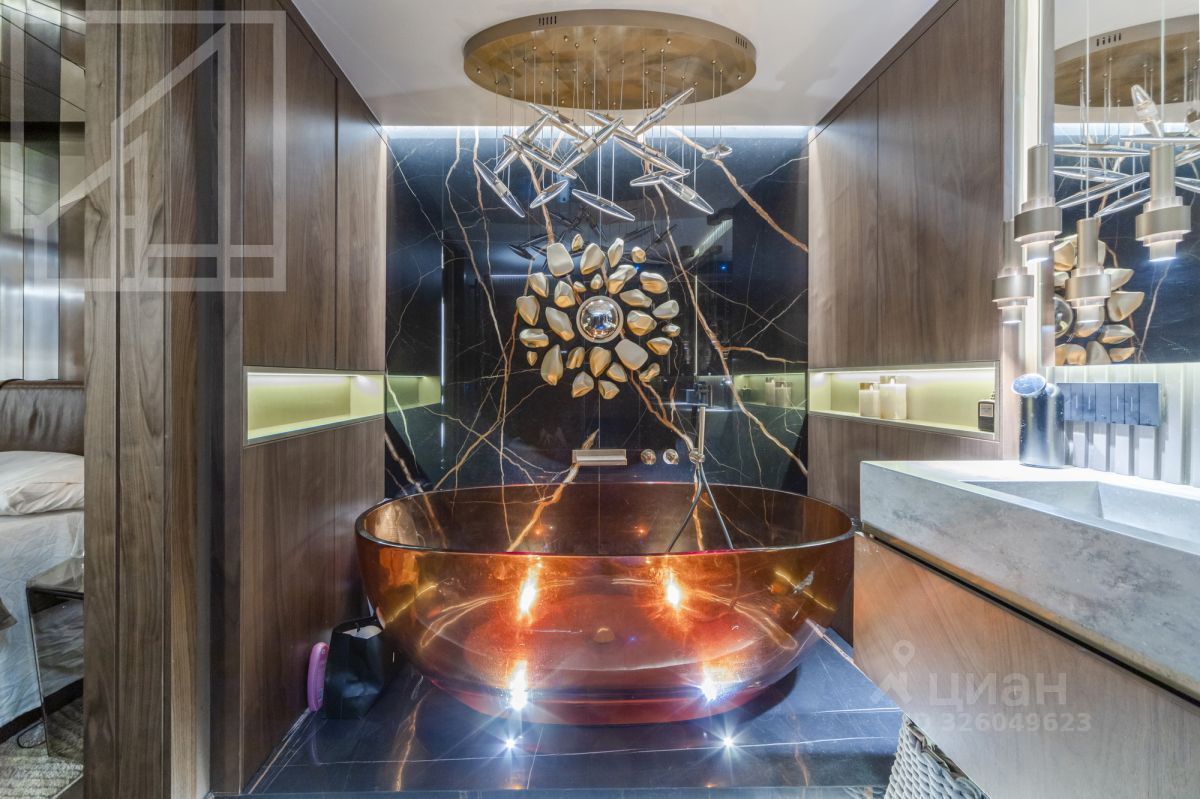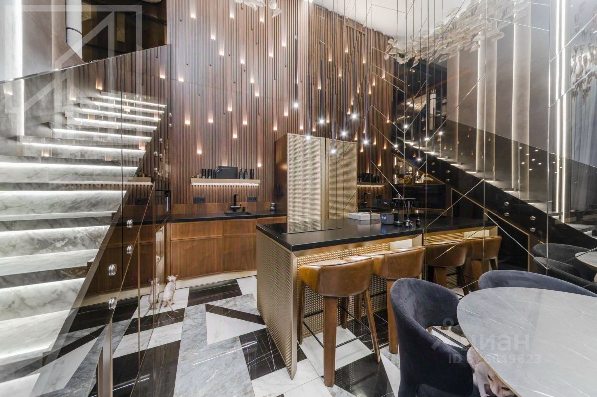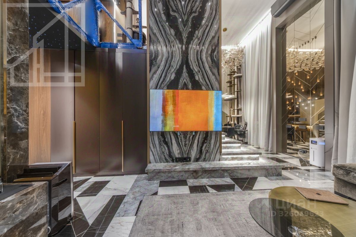 Лот 555279. Бонус коллегам! Двухуровневый пентхаус с биокамином и водопадом в комплексе ''Талисман на Дмитровском'' рядом с парком и рекой Лихоборка на севере Москвы. Дизайнерский интерьер, в отделке использован натуральный мрамор, гранит, ценные породы дерева. Квартира полностью меблирована и укомплектована техникой.