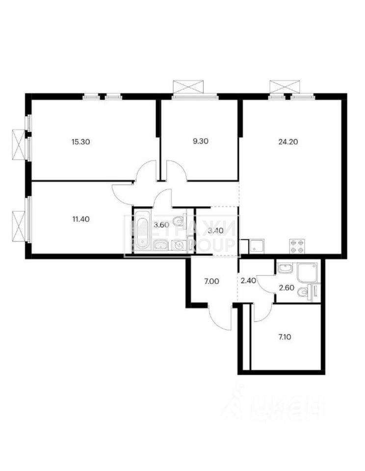 3 изолированные комнаты (15,3 м², 11,4 м², 9,3 м²) — пространство для жизни, работы и отдыха,