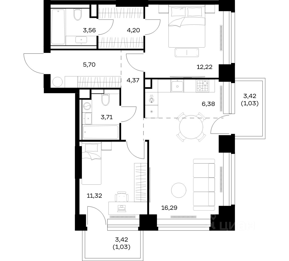 Строим кварталы для жизни с заботой о будущем. Предлагается 2-комнатная квартира премиум-класса площадью 69,81 кв.м в корпусе 1 на 11-м этаже, в жилом комплексе ''NOVA''.
