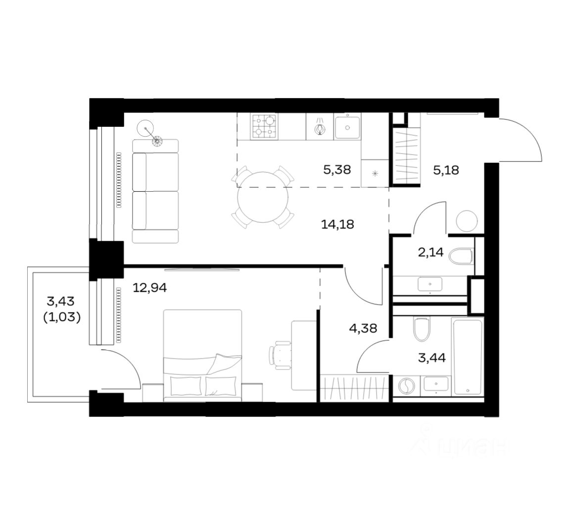 Строим кварталы для жизни с заботой о будущем. Предлагается 1-комнатная квартира премиум-класса площадью 48,67 кв.м в корпусе 1 на 7-м этаже, в жилом комплексе ''NOVA''.