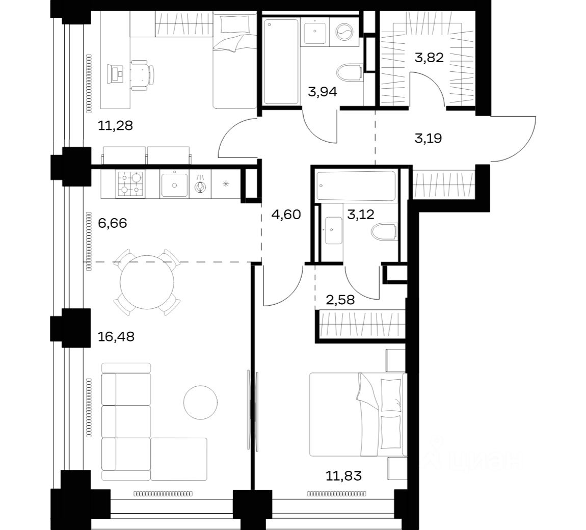Строим кварталы для жизни с заботой о будущем. Предлагается 2-комнатная квартира премиум-класса площадью 67,5 кв.м в корпусе 2 на 15-м этаже, в жилом комплексе ''NOVA''.