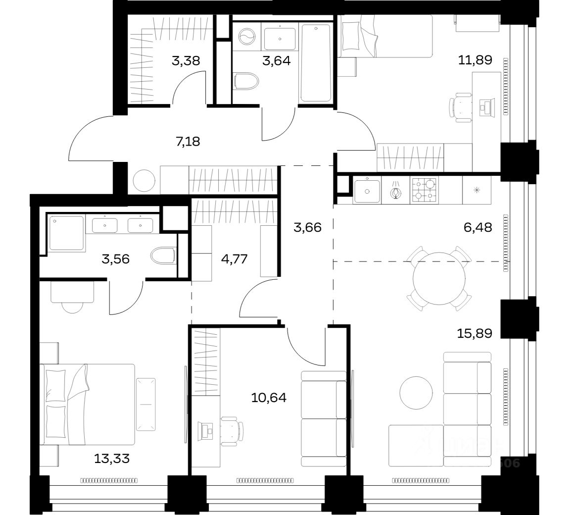 Строим кварталы для жизни с заботой о будущем. Предлагается 3-комнатная квартира премиум-класса площадью 84,42 кв.м в корпусе 3 на 29-м этаже, в жилом комплексе ''NOVA''.