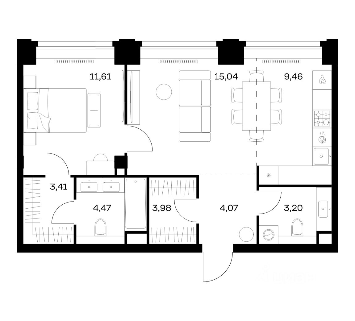 Строим кварталы для жизни с заботой о будущем. Предлагается 1-комнатная квартира премиум-класса площадью 55,24 кв.м в корпусе 3 на 28-м этаже, в жилом комплексе ''NOVA''.