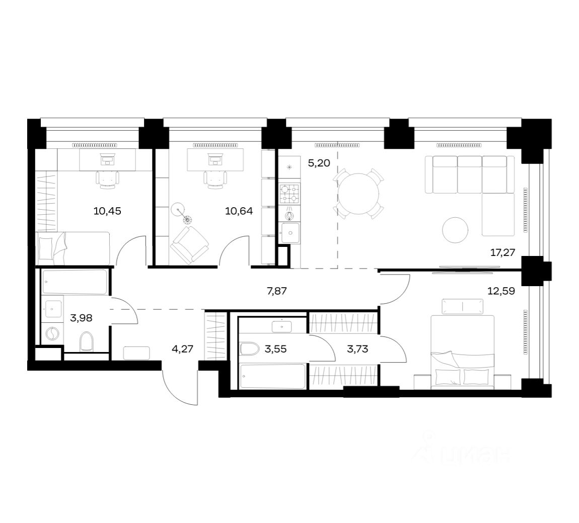 Строим кварталы для жизни с заботой о будущем. Предлагается 3-комнатная квартира премиум-класса площадью 79,55 кв.м в корпусе 3 на 24-м этаже, в жилом комплексе ''NOVA''.