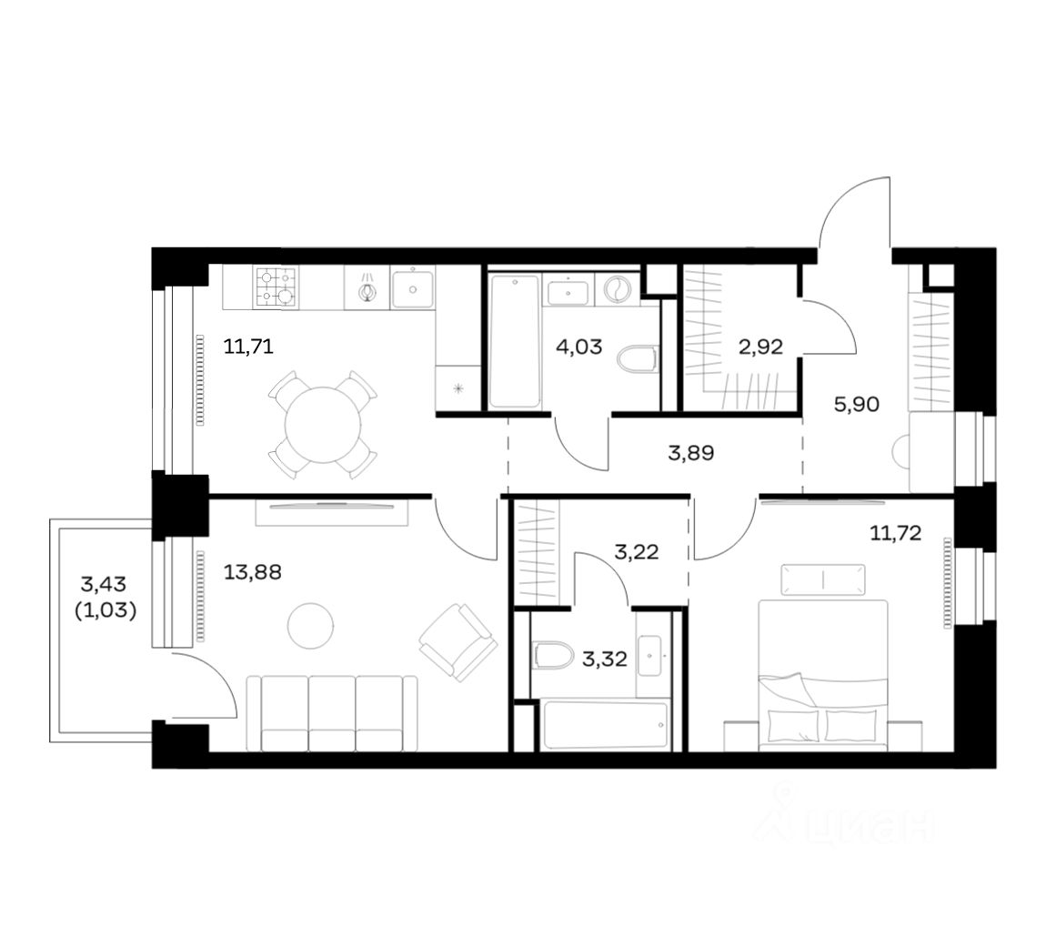 Строим кварталы для жизни с заботой о будущем. Предлагается 2-комнатная квартира премиум-класса площадью 61,62 кв.м в корпусе 1 на 4-м этаже, в жилом комплексе ''NOVA''.