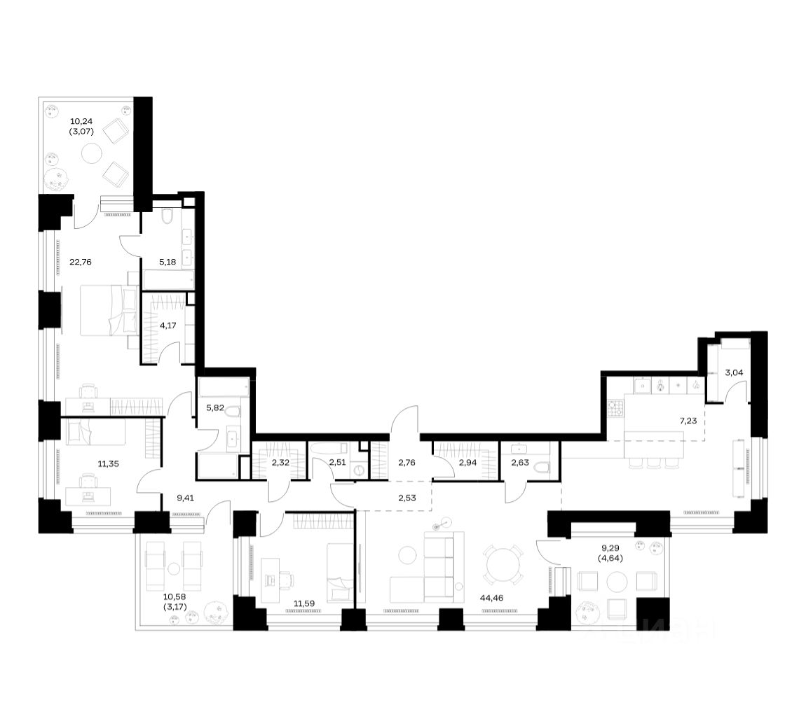 Строим кварталы для жизни с заботой о будущем. Предлагается 3-комнатная квартира премиум-класса площадью 151,58 кв.м в корпусе 1 на 39-м этаже, в жилом комплексе ''NOVA''.