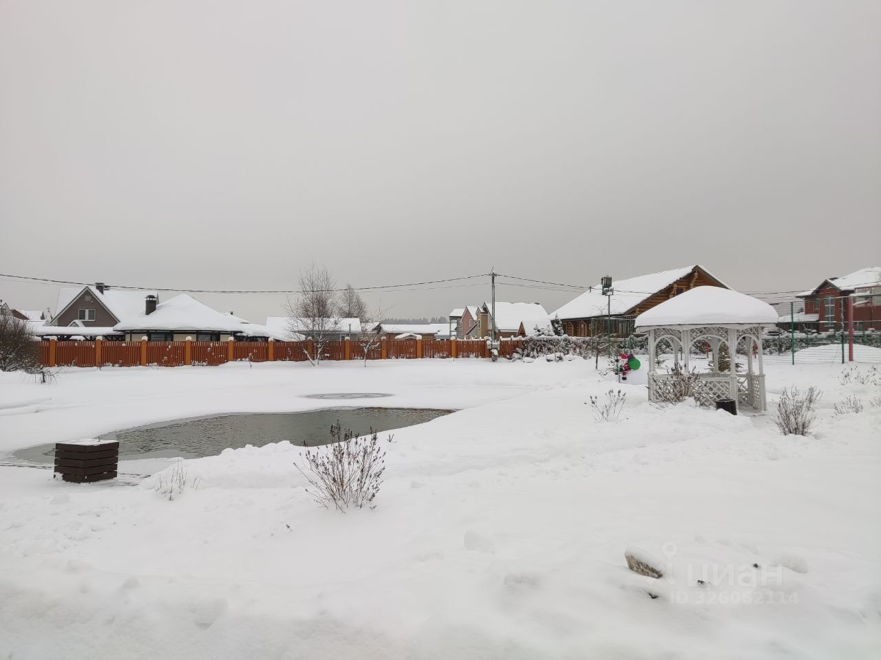 Участок большой, 14 соток, расположен в центре поселка, напротив пруда. На участке есть детская горка с качелями и песочницей, навес под машину с чердаком, беседка для отдыха, отдельное помещение для водной скважины, 6 грядок. Участок ухоженный, высажены цветы, кустарники, деревья.