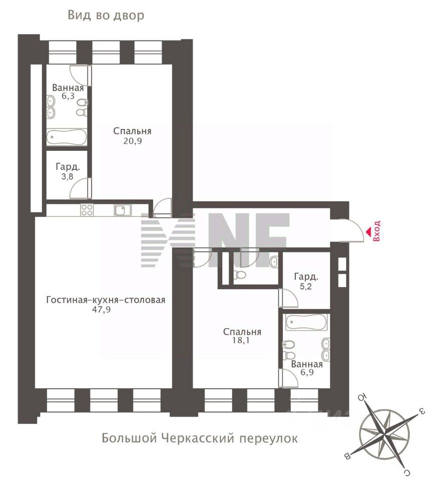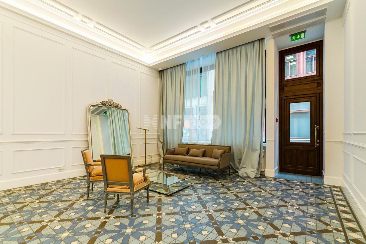 Лот: 38321. Прекрасный апартамент площадью 124,7 кв м расположен на втором этаже реконструированного исторического особняка на Никольской улице. Планировка включает кухню-гостиную, спальню, две гардеробные комнаты и два санузла. В квартире выполнен ремонт в стиле современной европейской классики. Использованы отделочные материалы и класса люкс, в том числе наборный паркет из ценных пород дерева, натуральный камень и дорогой текстиль, подобрана стильная и функциональная мебель, а также бытовая техника известных мировых брендов. Панорамные окна открывают приятные виды на улицу и тихий двор.