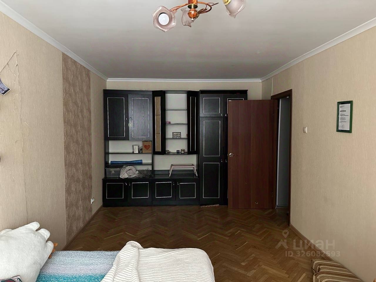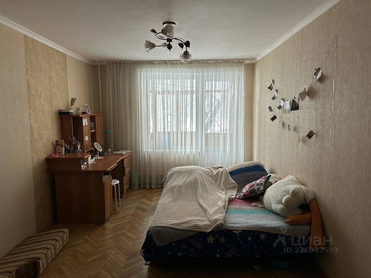 О КОМНАТЕ: - просторная, уютная -есть стол, шкаф, кровать 2-спальная (диван), шторы, балкон -выход в зелёный двор - дверь с замком