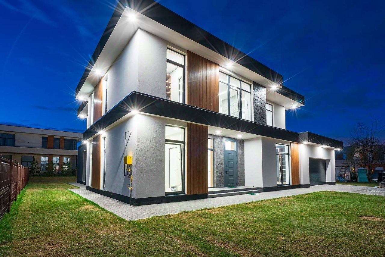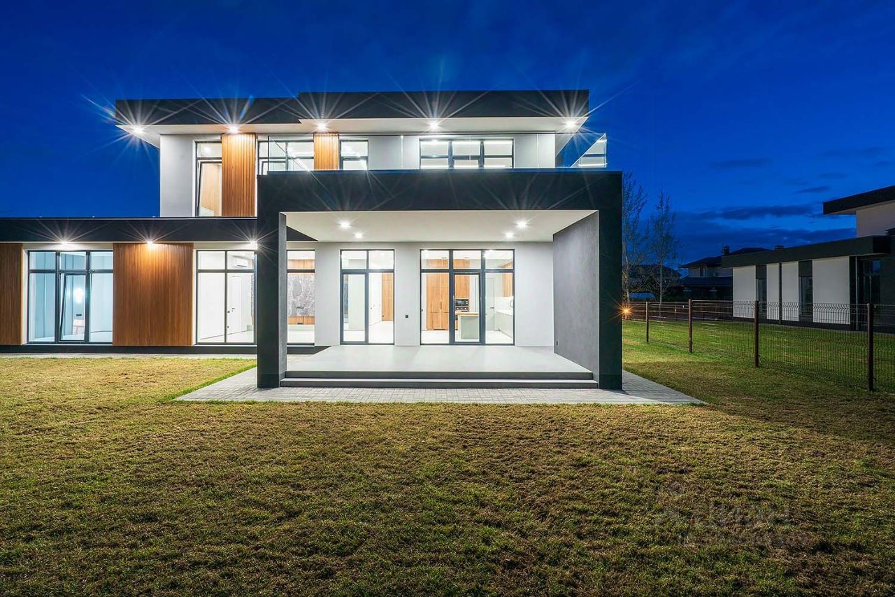 ОПИСАНИЕ: Предлагается на продажу двухуровневый дом в современном стиле в охраняемом КП Заря. Дом хорошо расположен в глубине поселка на прилесном участке правильной формы. Современная планировка включает 4 спальни, каждая со своим с/у и гардеробной, а также помещение для персонала. Удобный выезд из поселка к платной дороге.