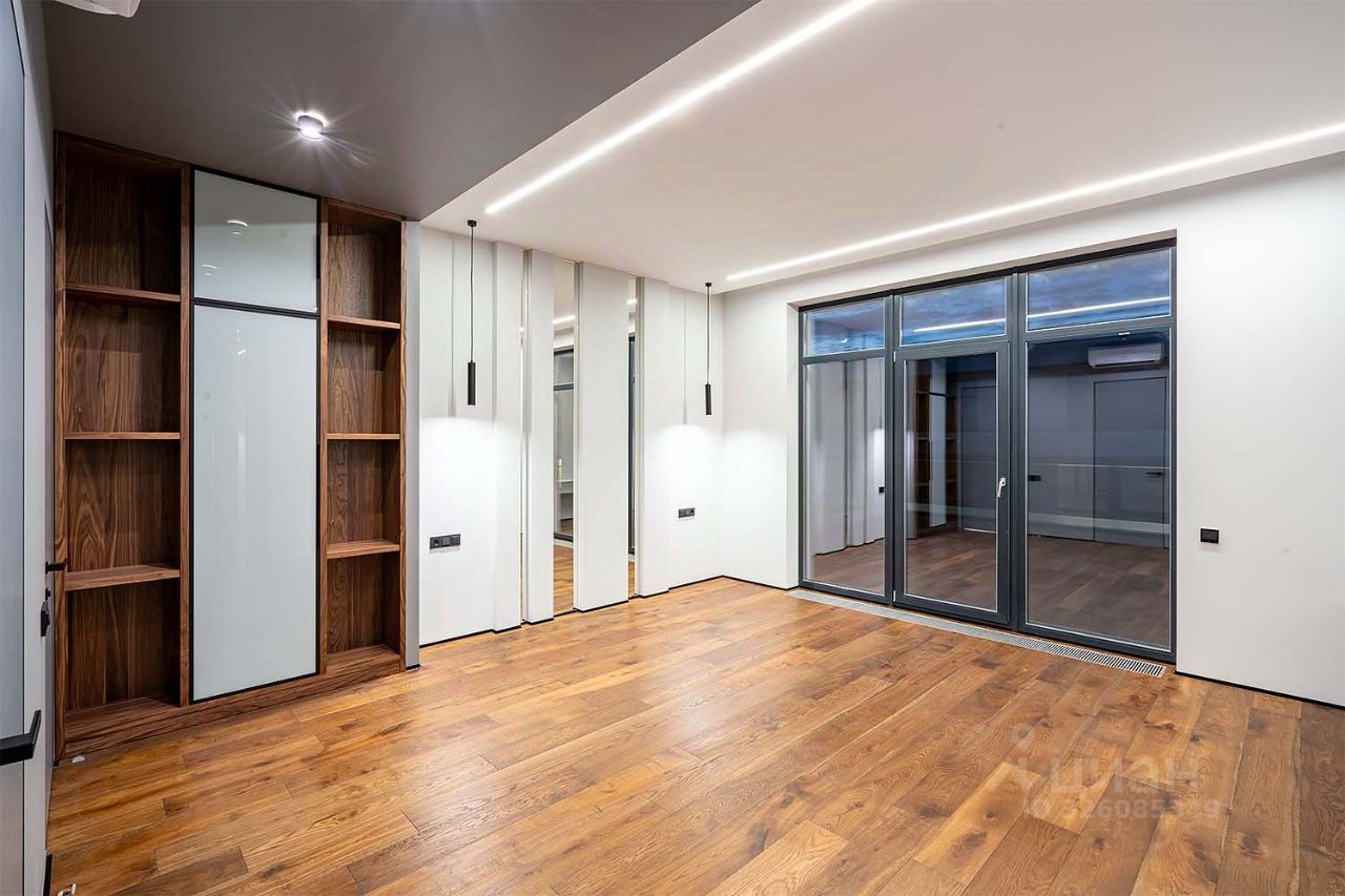 ПОЭТАЖНОЕ ОПИСАНИЕ: 1-ый уровень: Просторная гардеробная, спальня с с/у и гардеробной, кухня-гостиная, котельная, гараж на 2 м/м, блок для персонала