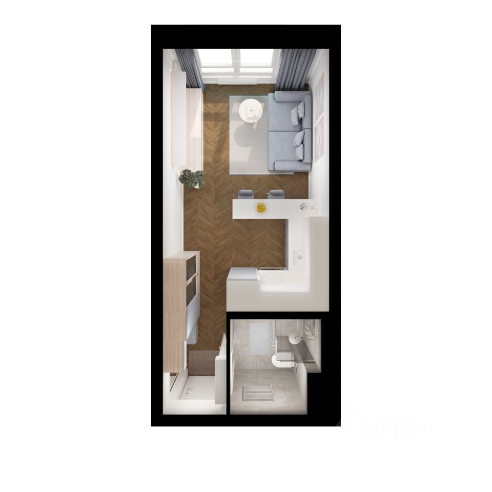 Продаётся квартира-студия площадью 22,1 кв.м на 21 этаже 32 этажного дома (Корпус 1.1.3, Секция 3) проекта ПИК Кронштадтский 9. Светлый просторный подъезд на уровне земли, функциональная планировка, большие окна, предчистовая отделка.