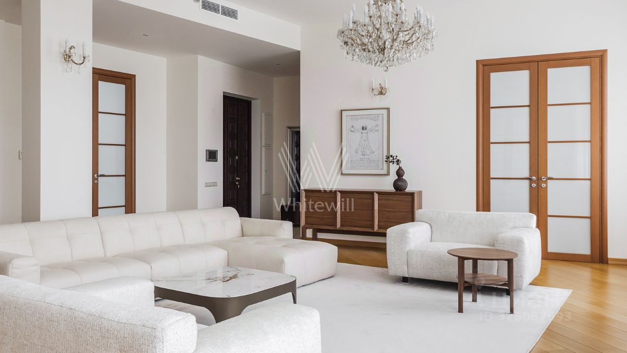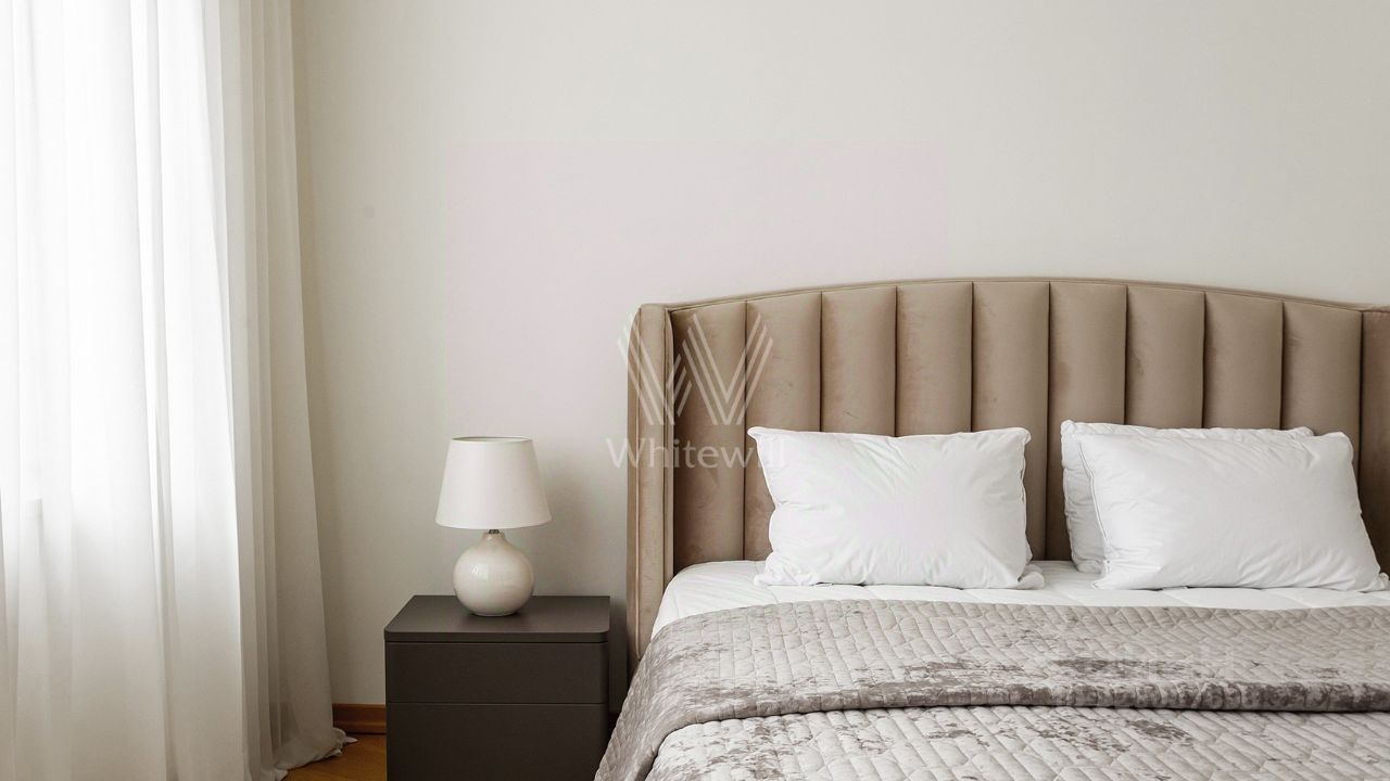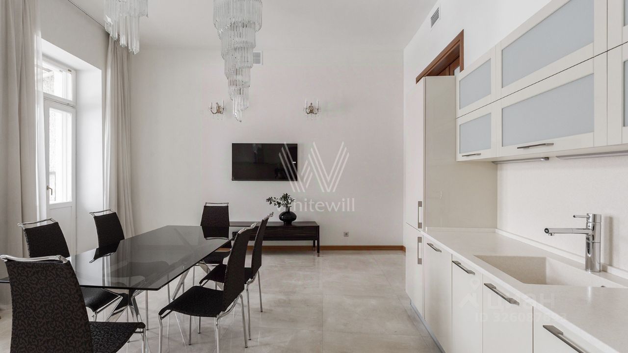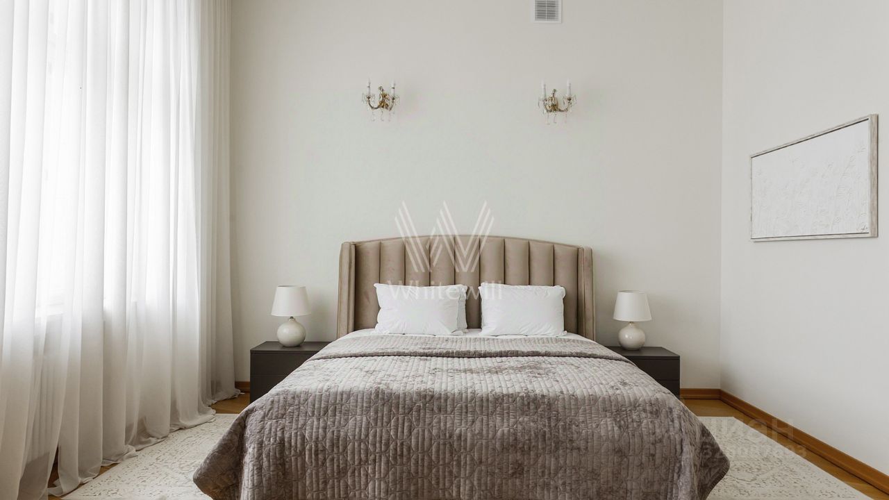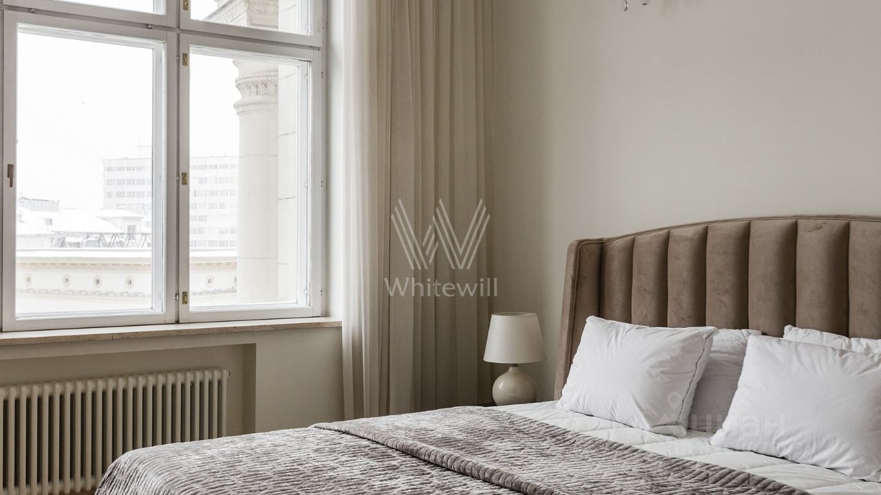 Бонус партнёрам 50%. Просторная квартира площадью 140 м² на знаменитой Тверской улице с видом на Кремль. Выполнена современная отделка в лаконичных светлых тонах. Большие окна, высокие потолки. Планировка: просторная гостиная, кухня-столовая с выходом на балкон, спальня со своим санузлом с душем, вторая спальня, санузел. В мастер-спальне и гостиной совершенно новая мебель. Квартира укомплектована бытовой техникой, установлена система кондиционирования, стиральная и посудомоечная машина. Стихийный паркинг во дворе за шлагбаумом.