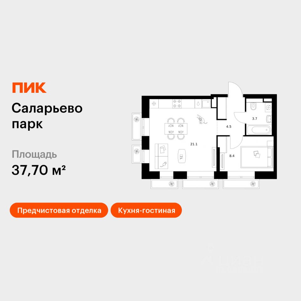 Продаётся 1-комн. квартира площадью 37,7 кв.м на 3 этаже 15 этажного дома (Корпус 57.2, Секция 2) проекта ПИК Саларьево парк. Светлый просторный подъезд на уровне земли, функциональная планировка, большие окна, предчистовая отделка.