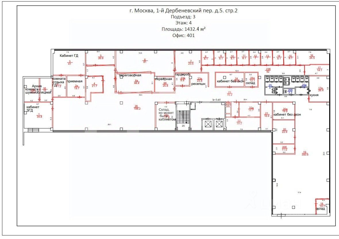 Аренда офиса 1432 кв. м в бизнес-центре ''Дербеневская Плаза'' (класс B+). Этаж: 4. Отделка - с отделкой Тип планировки - смешанная. Мокрые точки - да Сан. узлы - в блоке Наличие кухни - да. Помещение - свободно с 01.04.2026.