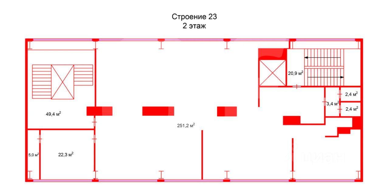 Этот лот состоит из нескольких помещений: 311 кв. м. и 289 кв. м.
