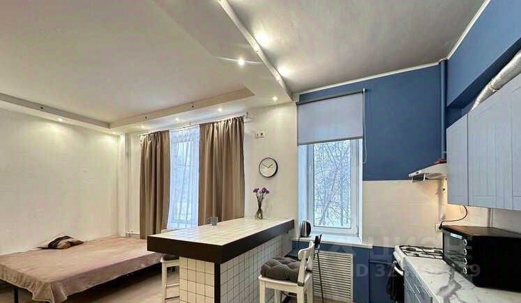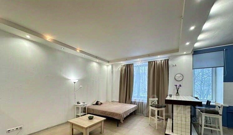 Сдаётся студия площадью 34 кв.м. с косметическим ремонтом на 2 этаже в 4-этажном доме на срок от 11 месяцев. Из техники есть: