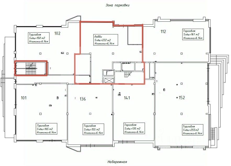 Этот лот состоит из нескольких помещений: 221 кв. м., 185 кв. м., 1332 кв. м., 1278 кв. м. и 222 кв. м.