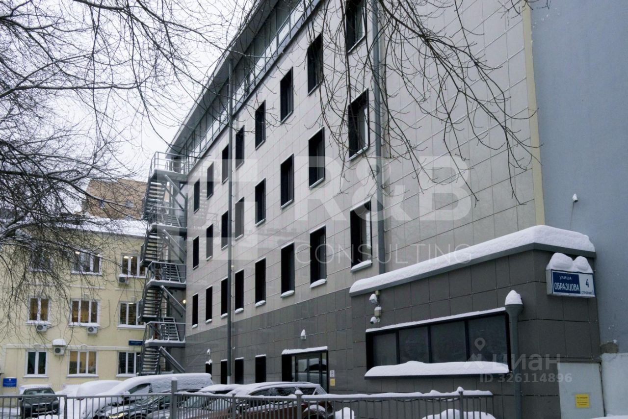 Бизнес-центр ''Образцова, 4с1'' находится по адресу: Москва, улица Образцова, 4с1. Район: Марьина роща Год реконструкции здания: 2015 Налоговая: 15 Наличие паркинга: наземный (3 м/м) Вентиляция: Приточная Пожарная система: Сигнализация Ближайшие станции метро: Достоевская (10 минут пешком), Менделеевская (12 минут пешком)