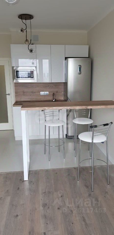 Общая площадь — 41,3 кв. м, жилая площадь —15 кв. м, кухня — 17,4 кв. м. Высота потолков 2,85 м