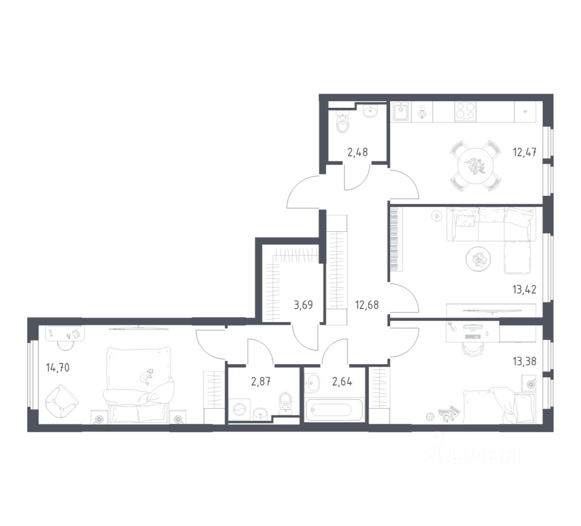 Строим кварталы для жизни с заботой о будущем. Предлагается 3-комнатная квартира комфорт-класса площадью 78,33 кв.м в корпусе 22 на 7-м этаже, в жилом комплексе ''Остафьево''.