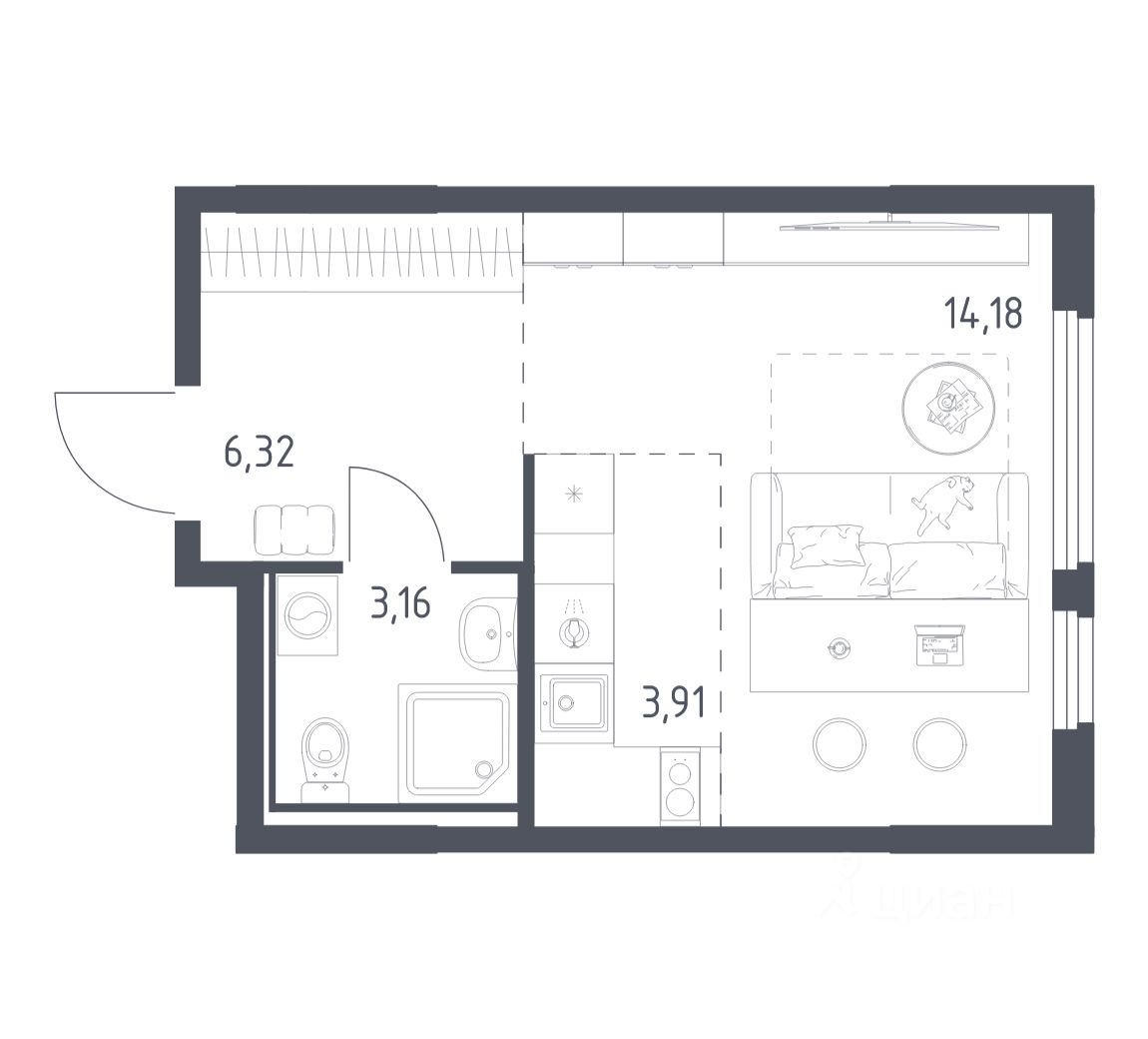 Общая площадь27,57 м2
