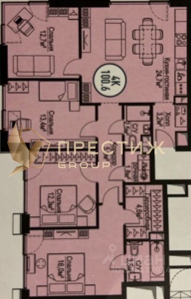 Продаётся 4-комнатная квартира в ЖК ''Метрополия'', башня ''Флоренция'' (сдана в 2024 году). - Общая площадь: 100,6 м² - Жилая площадь: 54,4 м² - Кухня: 24,7 м² - Этаж: 19/30 - Монолитный дом - Квартира в бетоне — возможность реализовать собственный дизайн