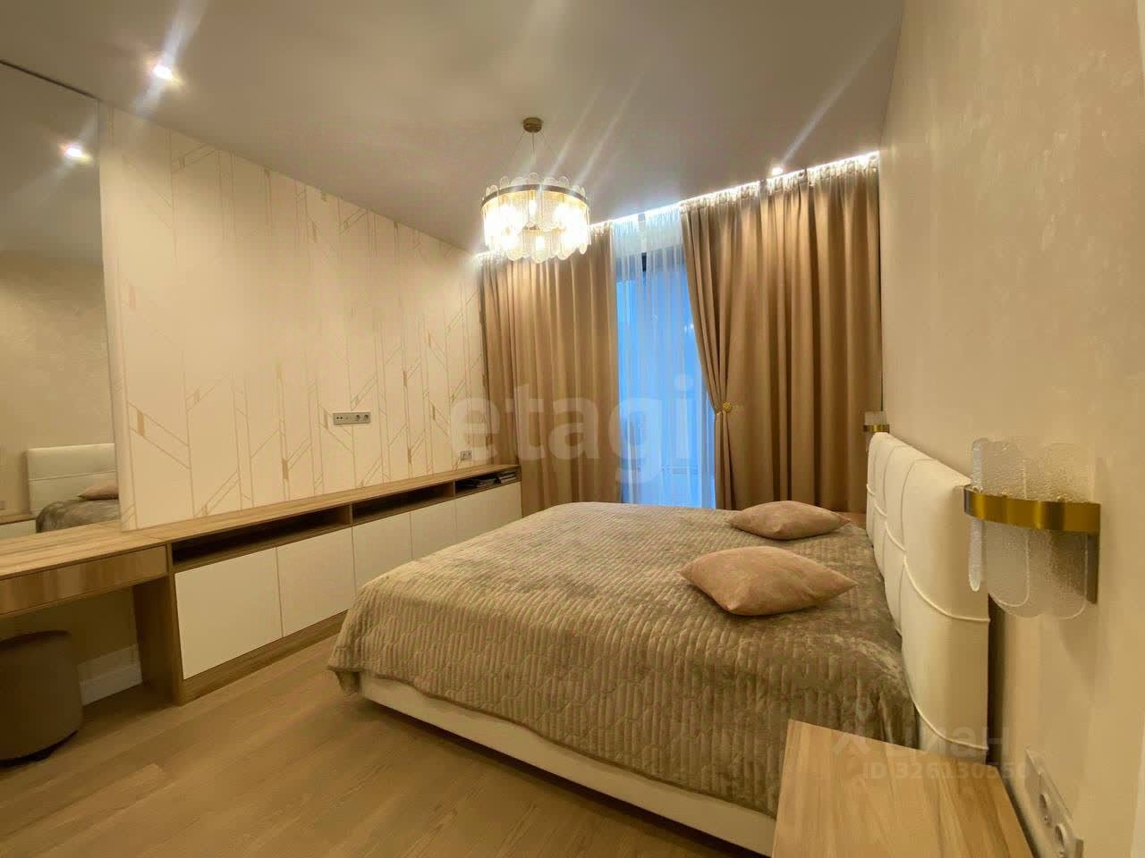 Просторная современная квартира с большими комнатами и просторными коридором. Окна выходят на юг и запад - обеспечивают максимальное количество света и тепла, делая квартиру очень светлой. Вся мебель и техника заказывалась по индивидуальному проекту под размеры помещений из качественных материалов, все механизмы с доводчиками. Кухонный гарнитур со встроенной техникой: двухстворчатый холодильник, встроенная варочная панель, духовой шкаф, микроволновая печь, посудомоечная машина. Очень много шкафов для хранения разного формата. В гостиной угловой диван, раскладывается в 2х спальное место для сна. Мастер-спальня: комната в которой есть своя гардеробная и санузел.