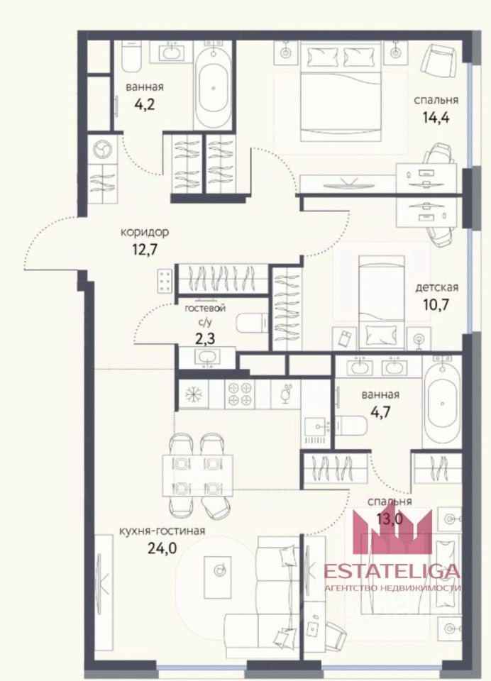Id 60088. Продаётся просторная 4-комнатная квартира от собственника. Для воплощения ваших дизайнерских идей — квартира передаётся без ремонта, что позволяет создать интерьер своей мечты без переплаты за чужие решения.