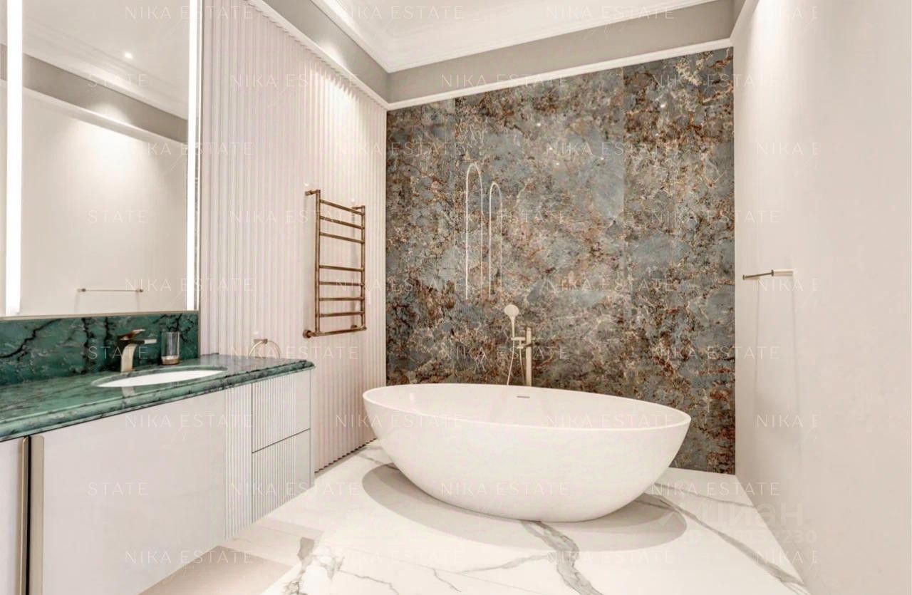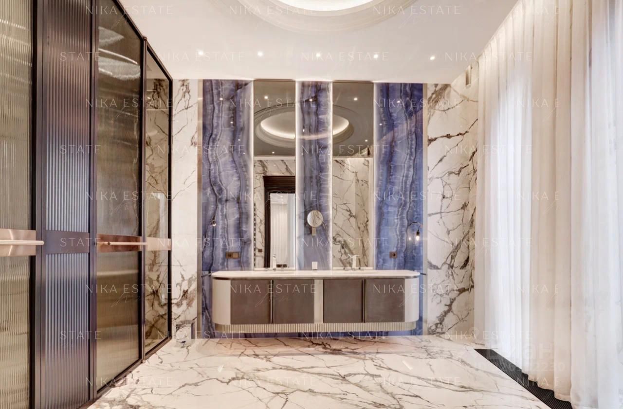 Функциональная планировка включает просторную гостиную-столовую с кухней, пять спален с приватными ванными и гардеробными, гостевой санузел и постирочную. Из окон открывается красивый вид на Москву-реку, памятник Петру I, Парк Музеон.