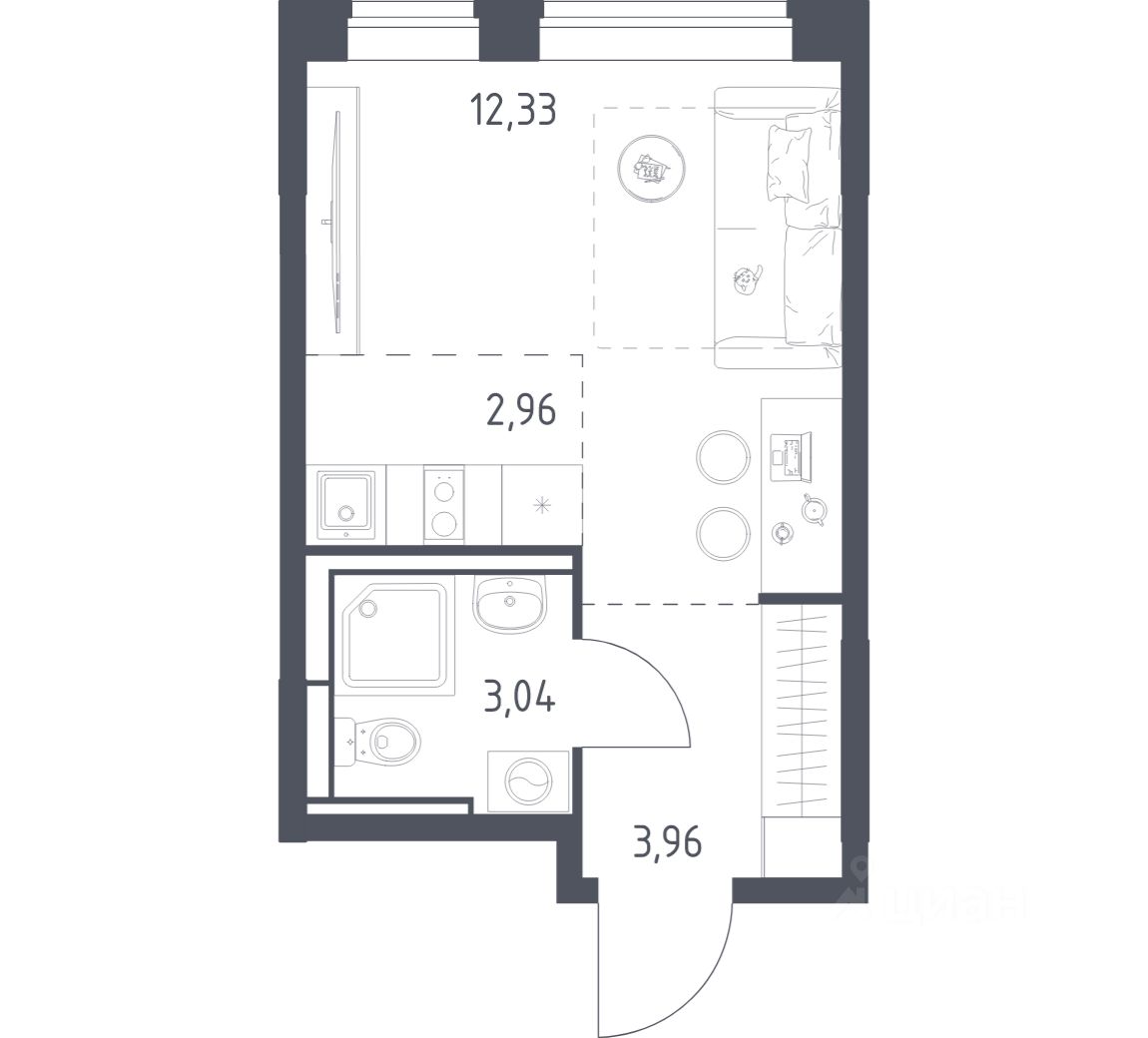 Общая площадь22,29 м2