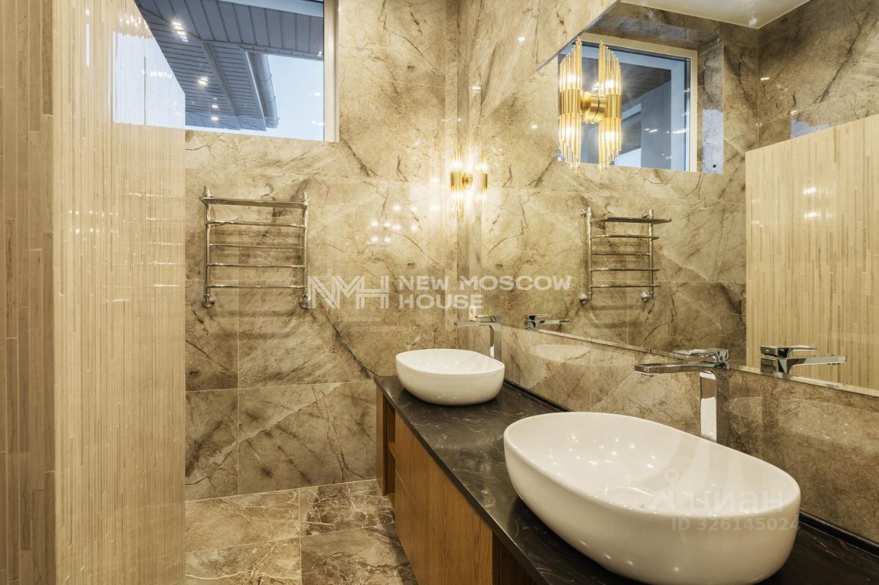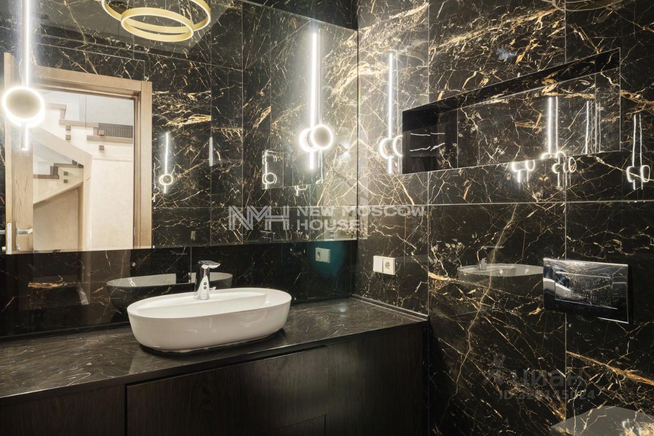 выполнен ремонт ''под ключ'' в современном стиле, стены фактурная покраска с элементами современного декора, венецианская штукатурка, керамогранит, шпон, многоуровневые потолки с трековой системой освещения, полы керамогранит, испанский ламинат, системы теплый пол. Дом полностью меблирован. Установлены импортная сантехника, встроенная кухня со всей бытовой техникой, мягкая мебель.