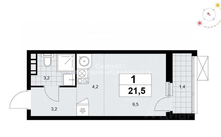Арт. 129023866 Продается студия, площадью 21,5 м2.