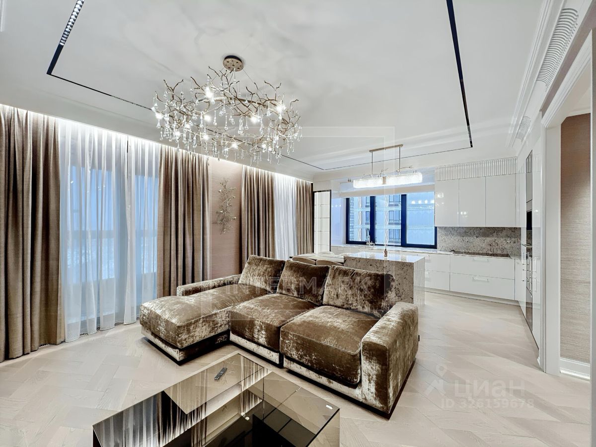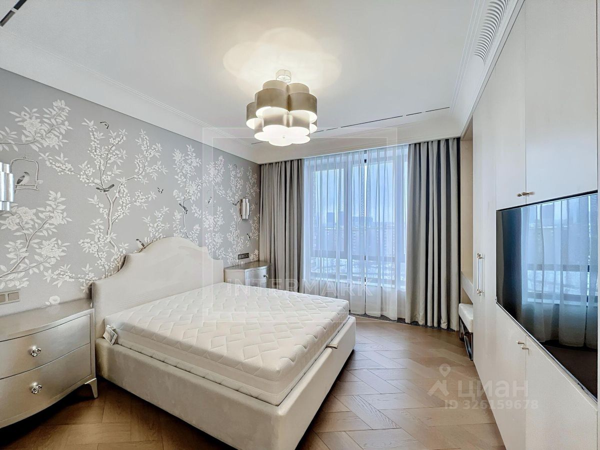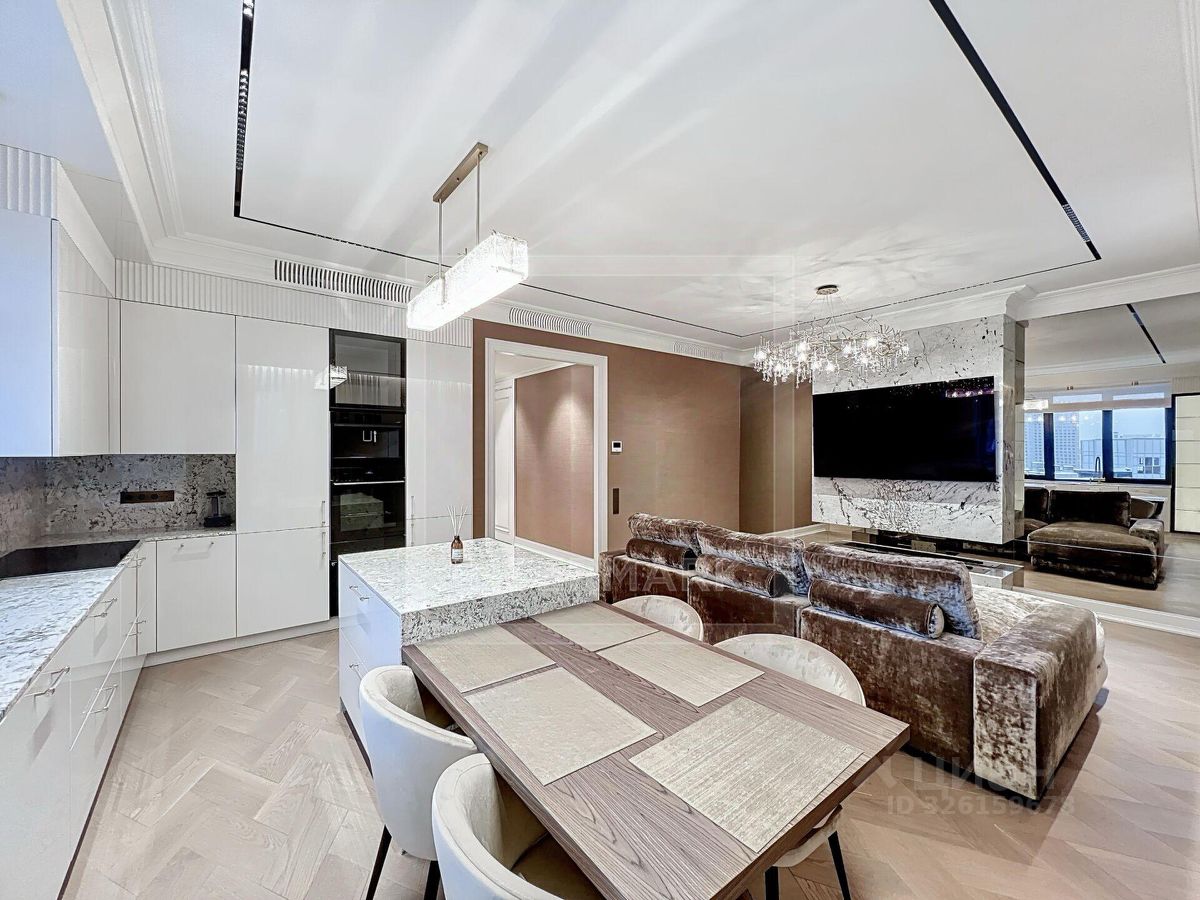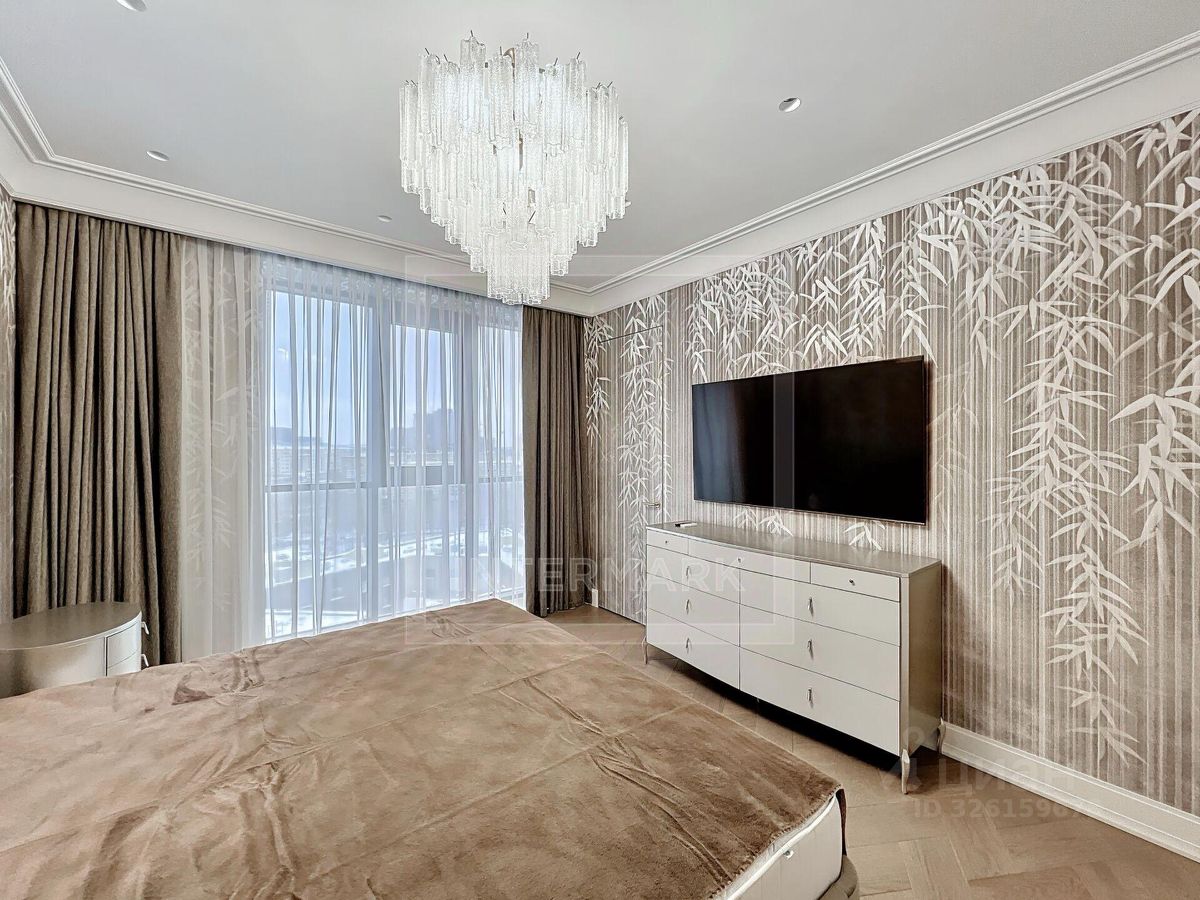 ID 47555. Превосходная видовая 3-комнатная квартира в ЖК River Sky (Ривер Скай). Сдается впервые после стильного дизайнерского ремонта. Общая площадь - 123 кв. м. Функциональная планировка: холл, студия гостиная-кухня-столовая, 2 спальные комнаты, 2 ванные комнаты, постирочная, гардеробная, 2 теплые лоджии с отделкой. Богатое оснащение техникой и оборудованием ведущих брендов: винный шкаф, 2 холодильника, стиральная и сушильная машины, духовой шкаф с функцией микроволновой печи и пароварки, вытяжка, варочная панель, посудомоечная машина, телевизоры. Установлен камин и климатическая система с многозональным контролем. Комплекс имеет закрытый охраняемый двор-парк, игровые и зелёные зоны. ЖК Ривер - самый близкий к Кремлю квартал с собственной пешеходной набережной Москвы-реки.