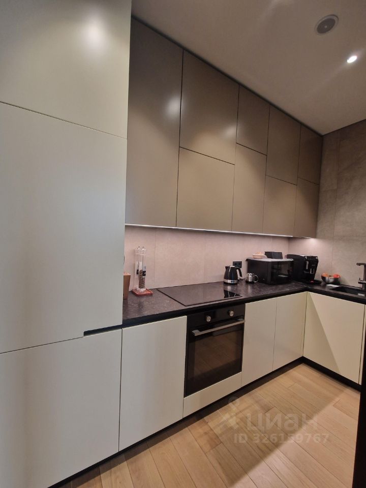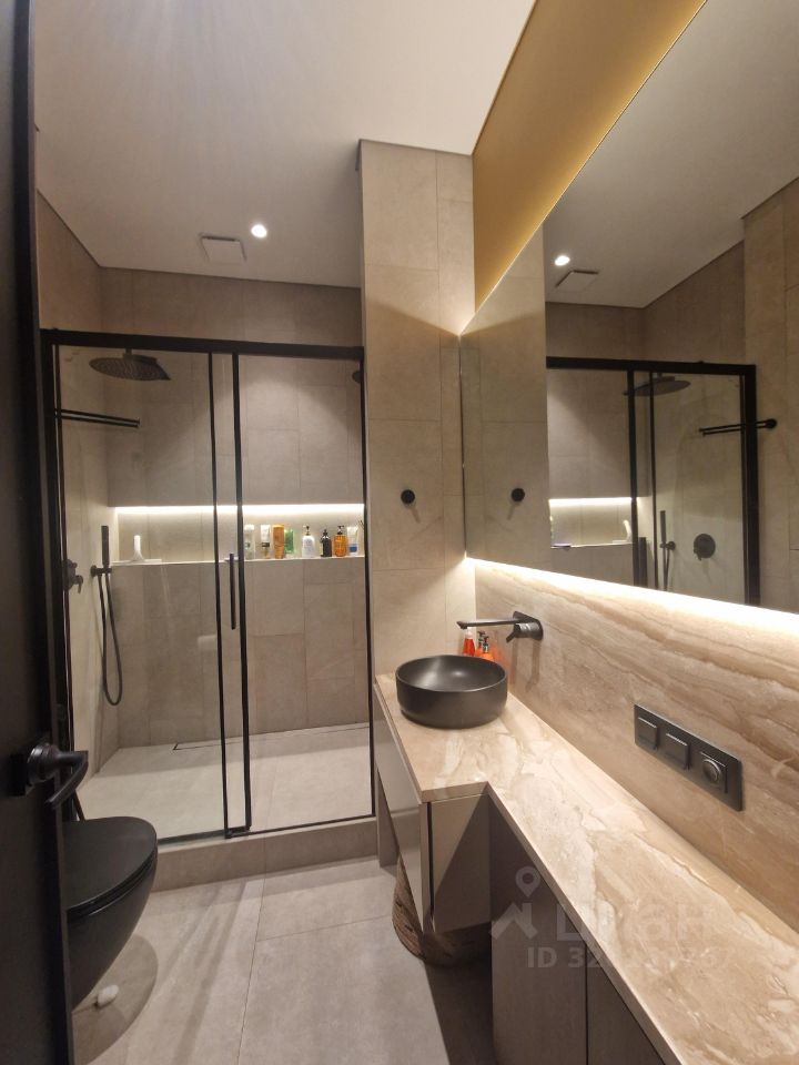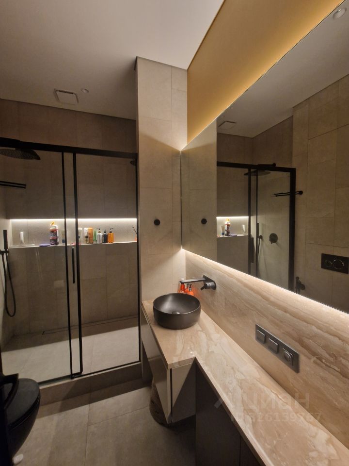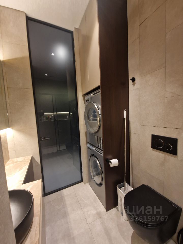 Большие окна и высокий уровень естественного освещения. Сплит система с двумя внутренними блоками. Теплый пол, система защиты от протечек, много декоративной подсветки, нагреватель воды, для удобства 2 душевые системы с тропическим и боковым, подоконники и стол из натурального камня, встроенный шкаф в прихожей, гардеробная комната, стиральная машина и сушильная, вся мебель выполнена на заказ, встроена по размерам. Кухня оборудована высококачественной техникой: варочной поверхностью, духовым шкафом, посудомоечной машиной, вытяжкой и холодильником.