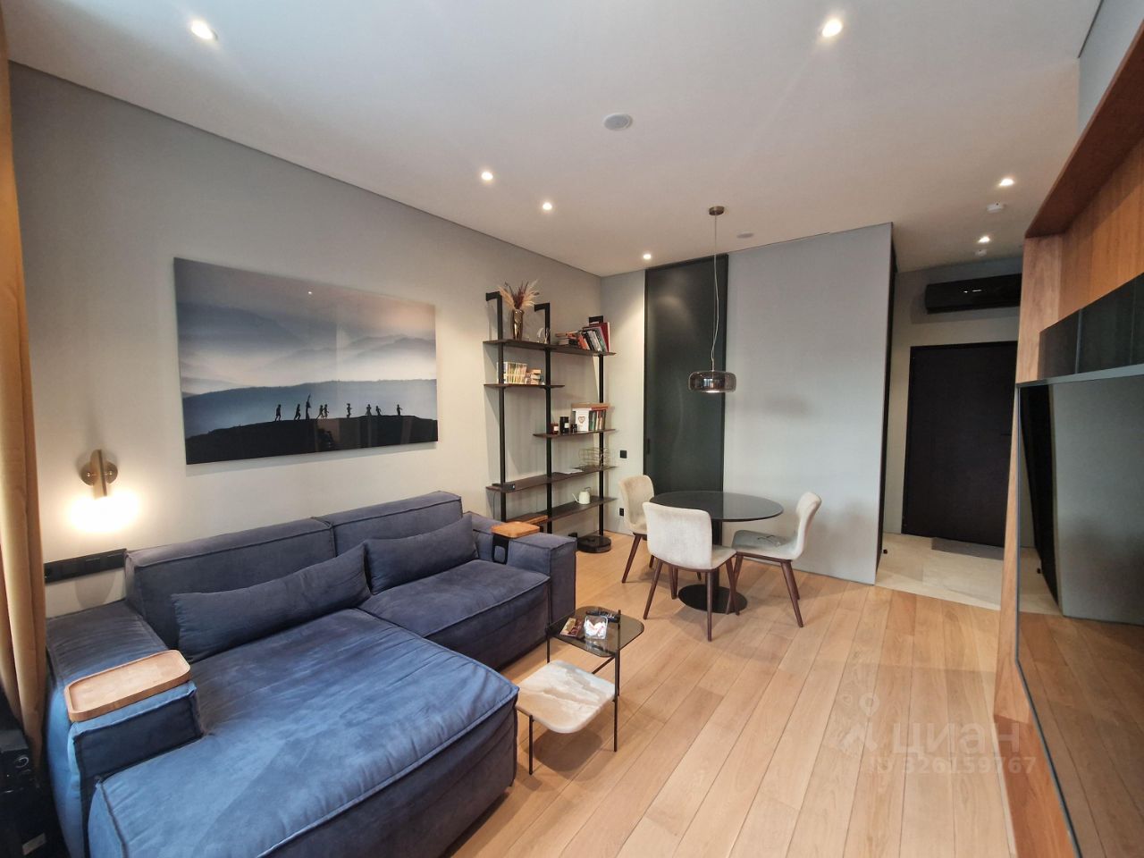 Большие окна и высокий уровень естественного освещения. Сплит система с двумя внутренними блоками.