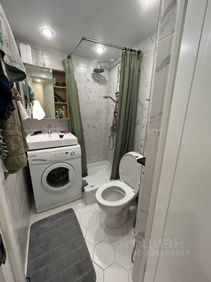 Санузел: стиральная машина, 4,5 кг, раковина над стиральной машиной, шкафчик и дополнительные зоны хранения, полки,. гигиенический душ, туалет, душевая