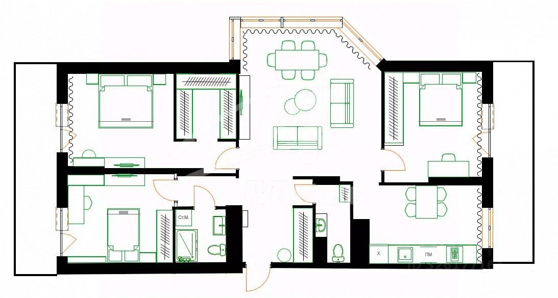 Арт. 129058887 Предлагается просторная видовая трехкомнатная квартира площадью 112 м2, без учта лоджий (две лоджии по 12 м2). Расположена на 24 этаже 26-этажного дома. Планировка квартиры позволяет воплотить в жизнь самый смелый дизайн-проект. Возможно изменение планировки на Евро-4 (см.фото). По плану БТИ квартира состоит из кухни площадью 14,5 м2, комнат 12,8 и 23 м2 и просторной гостиной площадью 38 м2. Два санузла, просторная прихожая, где можно оборудовать места для хранения вещей. В гостиной во всю стену панорамное окно, две огромные лоджии. Из каждого окна открываются прекрасные виды на Москву. Окна выходят на 3 стороны. Дом новый, территория огорожена, въезд через шлагбаум. Есть подземный паркинг. Все соседи - очень приличные люди. Район с развитой транспортной и социальной инфраструктурой. Рядом с домом много мест для прогулок и активного отдыха: большой лесной массив, Битцевский лесопарк, Большой Чертановский пруд с зонами отдыха, каток Битца, конно-спортивный клуб, спортклуб, бассейн, Битцевская лыжня. Рядом школы, детские сады, библиотека, поликлиника, аптеки, супермаркеты. До ближайшего метро Чертановская 10 минут спокойным шагом. На автомобиле удобный выезд на Балаклавский проспект, откуда можно легко попасть на Юго-восточную хорду, и все основные автомобильные развязки Москвы.