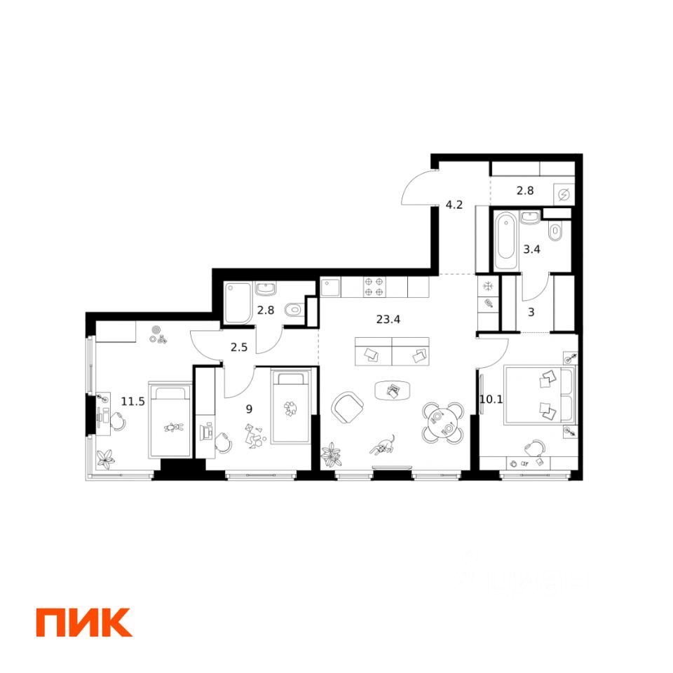 продам 3-к квартира25 401 380 ₽