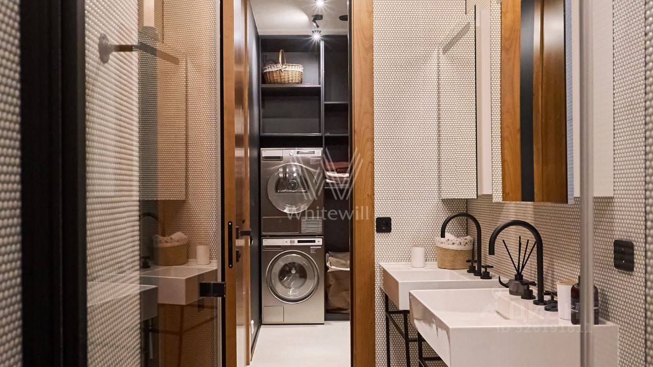 Апартаменты в комплексе премиум-класса ''Искра-парк''. Апартаменты с дизайнерской отделкой в современном стиле. В оформлении использованы фактуры дерева и гранита. Высота потолков 3,1 метра. Планировка включает просторную кухню-гостиную с обеденной и ТВ зонами, две спальни, кабинет, два санузла, гардеробную, кладовую и холл. Благодаря большому количеству окон пространство наполнено естественным светом и теплом. Открываются виды на город и благоустроенную территорию комплекса.