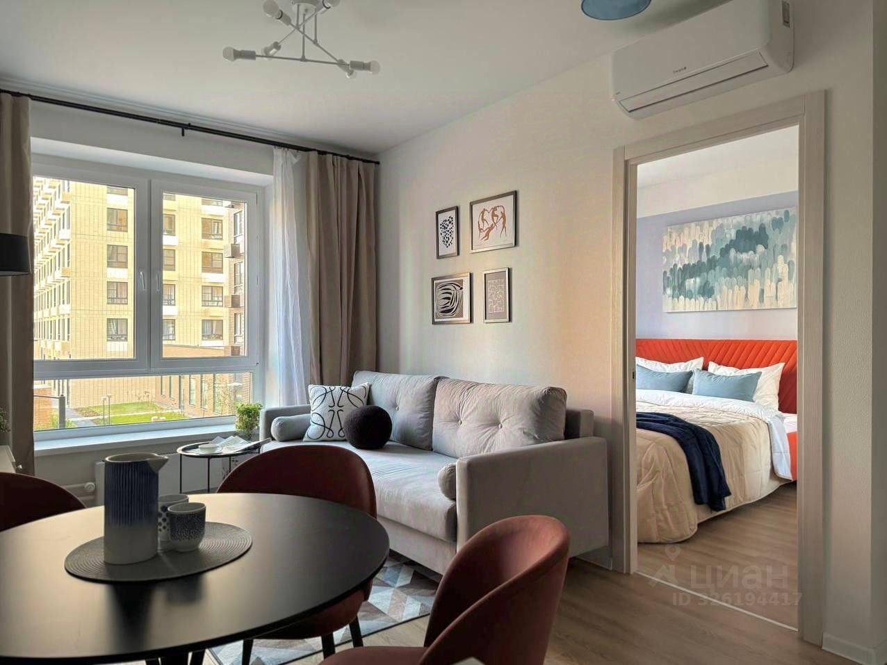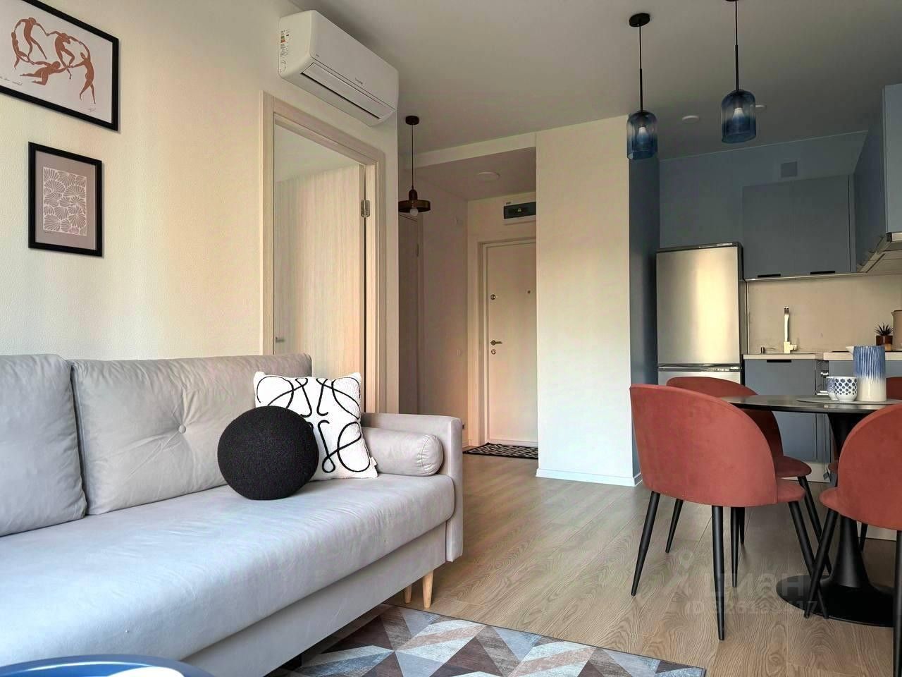 Квартира укомплектована качественной мебелью и современной техникой: кондиционер, кухонный гарнитур с посудомоечной машиной, холодильником, варочной панелью, духовым шкафом. Кровать с ортопедическим матрасом и дополнительным местом для хранения вещей, большой шкаф, удобный раскладной диван, стиральная машина.