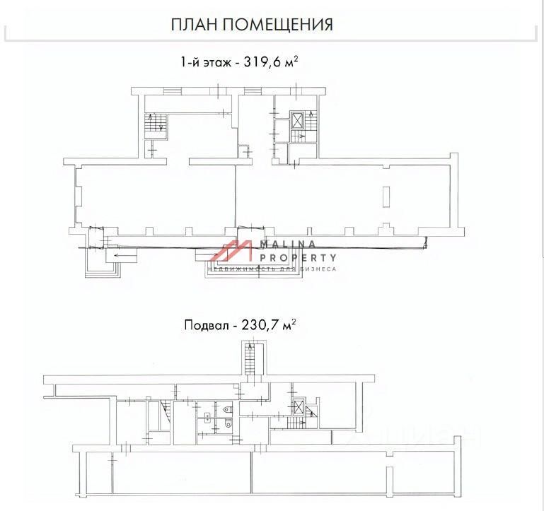 Общая площадь 551 м2 из них 319 м2 на 1 этаже, 231 м2 в цоколе, смешанная планировка, 2 отдельных входа с фасада, 2 с фасада, зона разгрузки со двора, высота потолка на 1 этаже 6 м, в подвале 2,3 м, витринные окна по фасаду. Электрическая мощность 60 кВт. Парковка перед фасадом. У помещения большой рекламный потенциал.