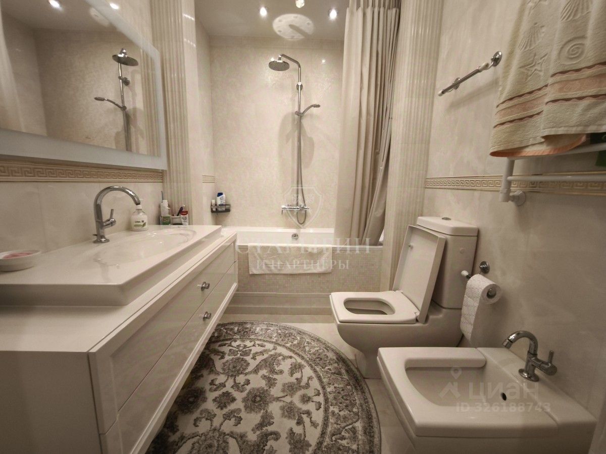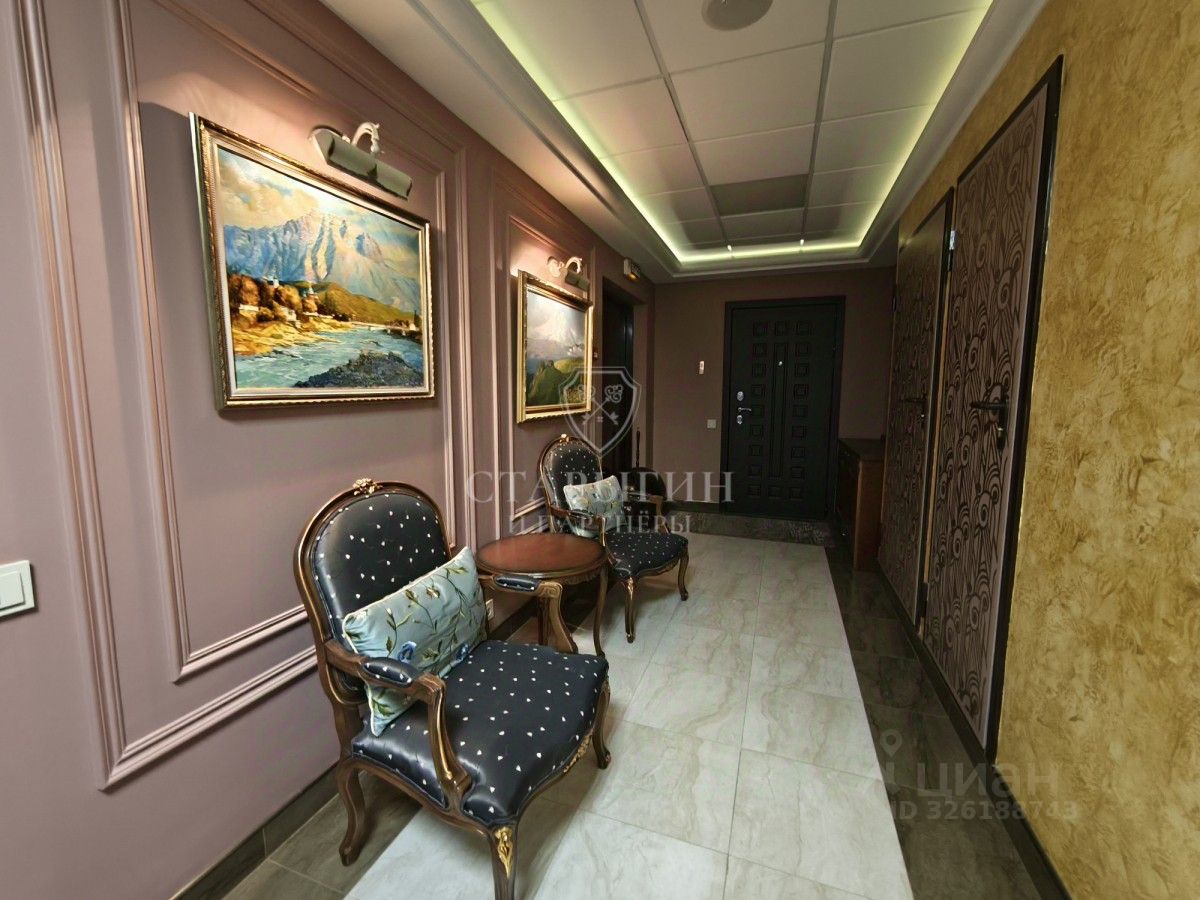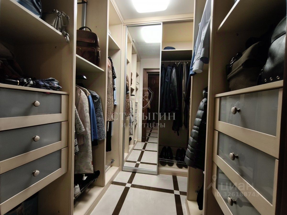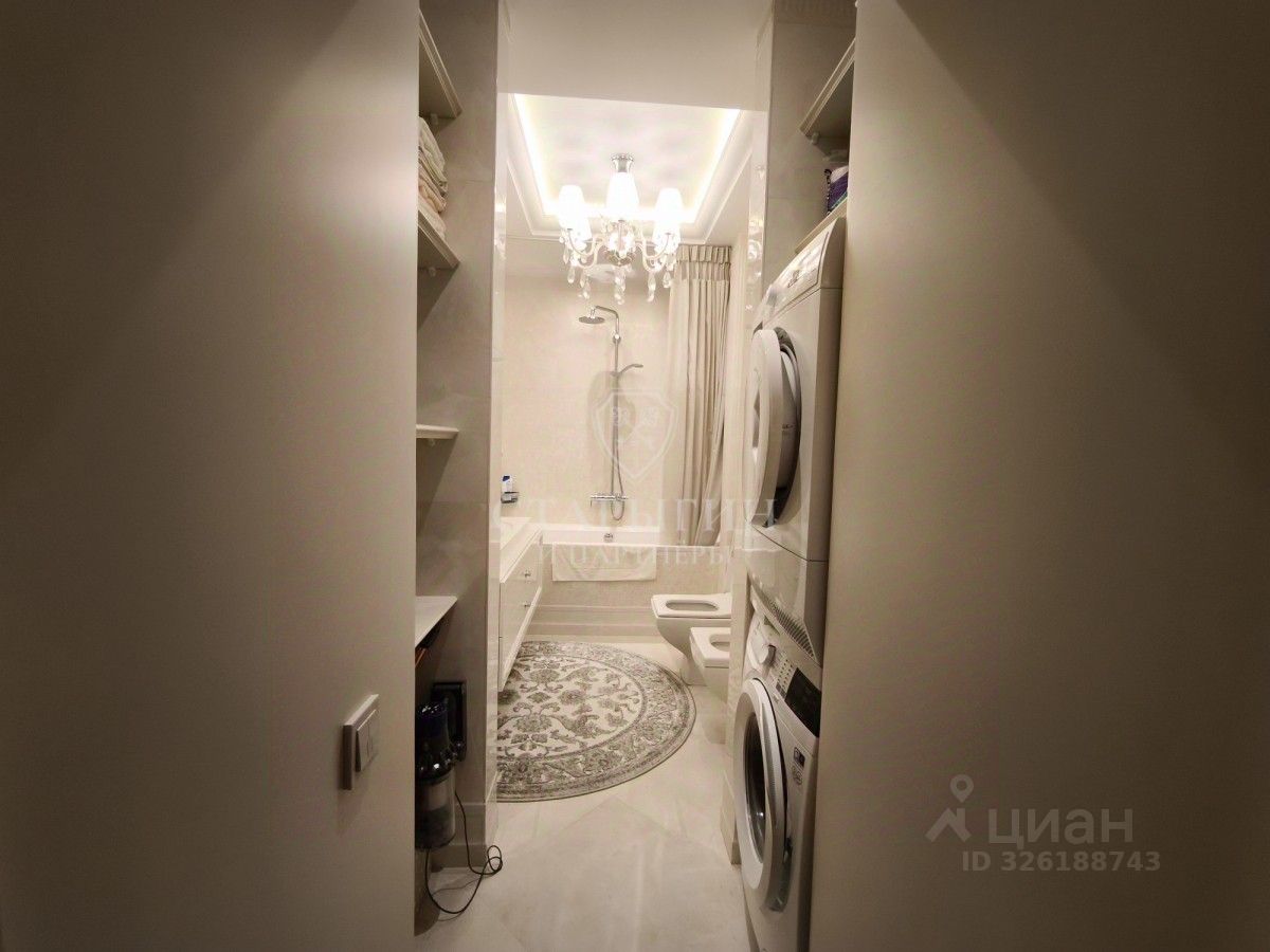 В квартире выполнен дизайнерский ремонт с использованием качественных материалов, на полу паркет из канадского дуба, установлена приточно-вытяжная система вентиляции и кондиционирования, окна выходят на две стороны, высота потолков 3.2 м, планировка состоит из: гардеробной, кладовки, двух санузлов, мастер спальни, спальни, кабинета и просторной кухни-гостиной.