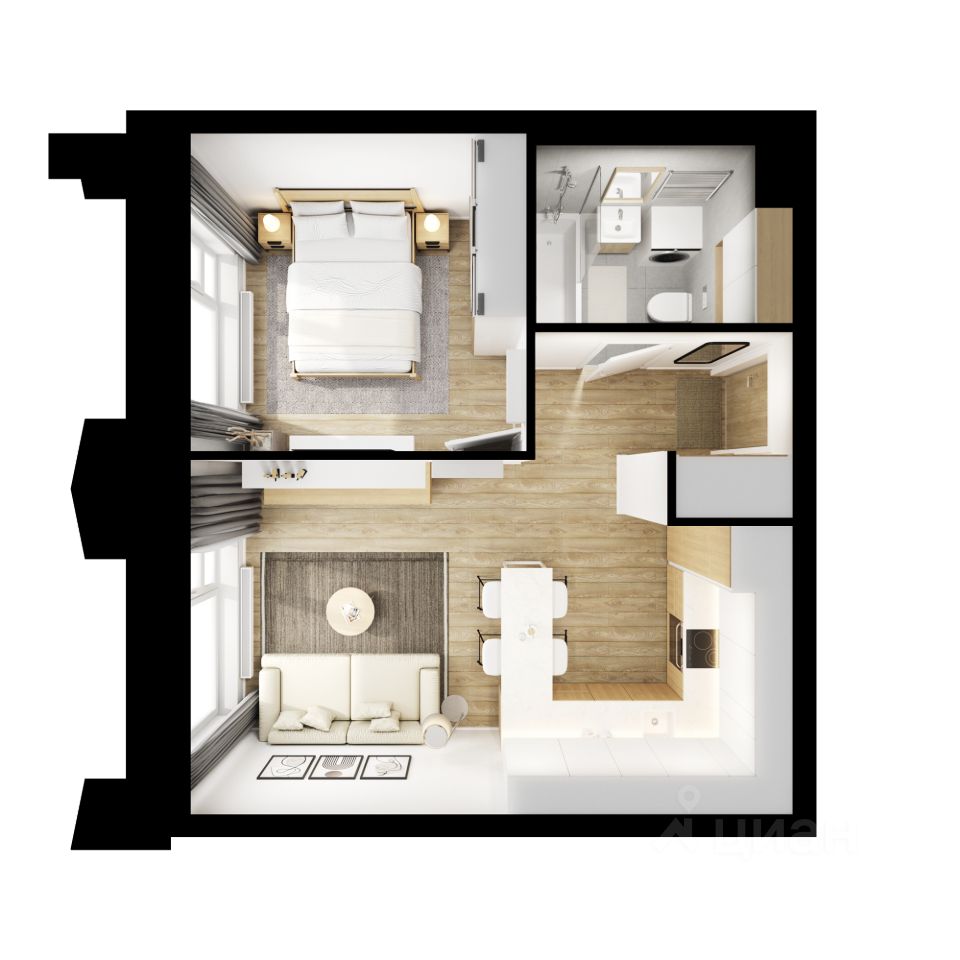 В ''Бусиновском парке'' предусмотрены квартиры с панорамным остеклением, различными балконами, эркерами, угловыми окнами и большим количеством окон — до пяти в одной комнате. В таких квартирах широкий угол обзора: можно пить кофе, наблюдая за жизнью на улице и наслаждаясь ощущением простора. Ещё больше комфорта придаст мягкий солнечный свет, который равномерно осветит всю квартиру. Артикул 947550 (Заст